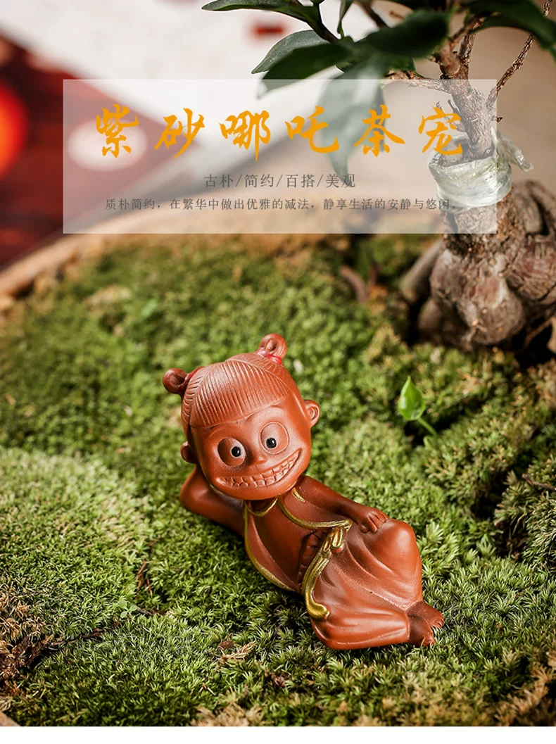 Đồ trang trí thú cưng trà cát tím cao cấp có thể nâng cao bàn trà Nezha chơi trà mini handmade khay trà trang trí trà đạo phụ kiện bộ trà