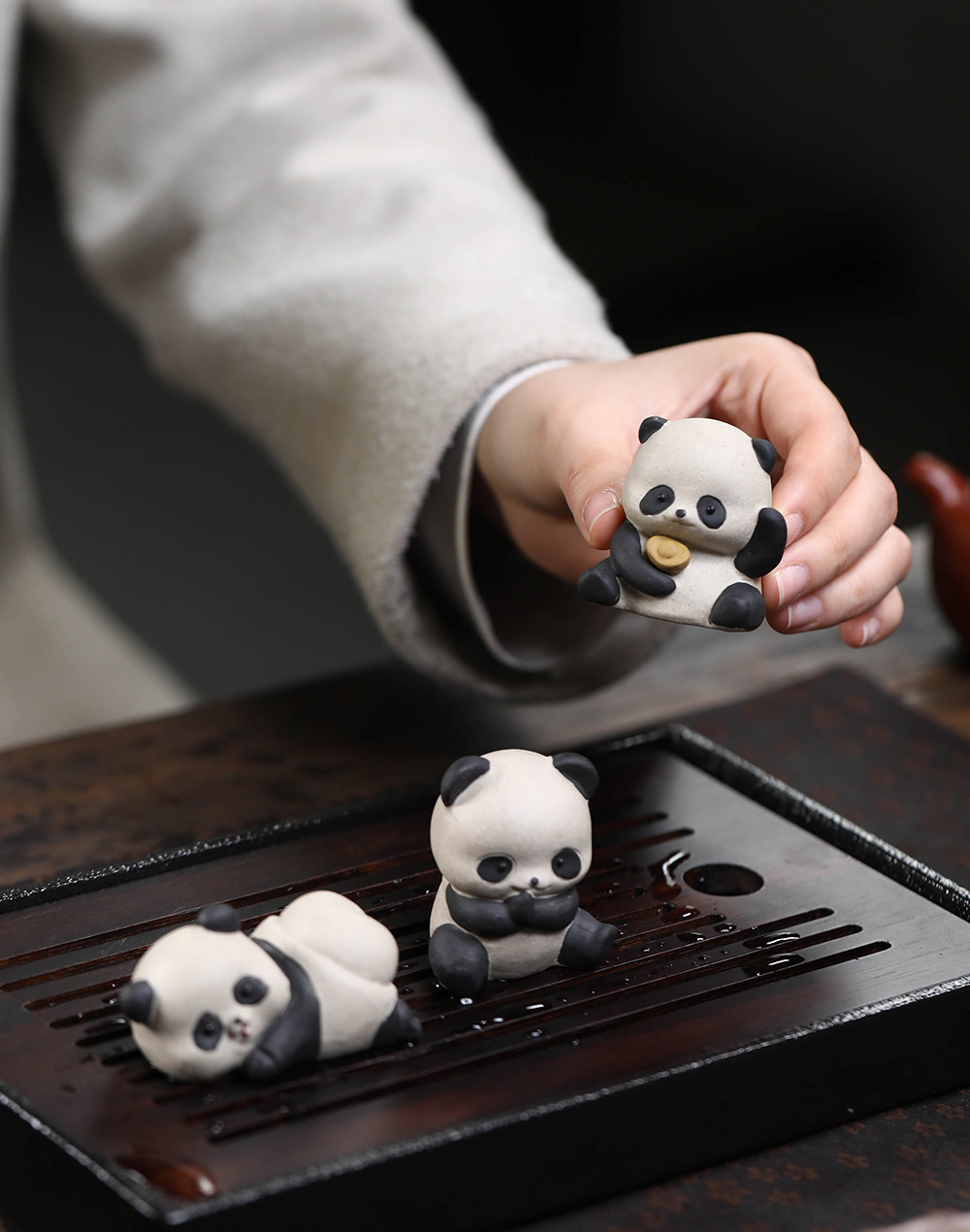 Đồ trang trí thú cưng trà gấu trúc tử sa trang trí bàn trà đáng yêu Phụ Kiện Bộ trà sáng tạo đồ trang trí bàn làm việc