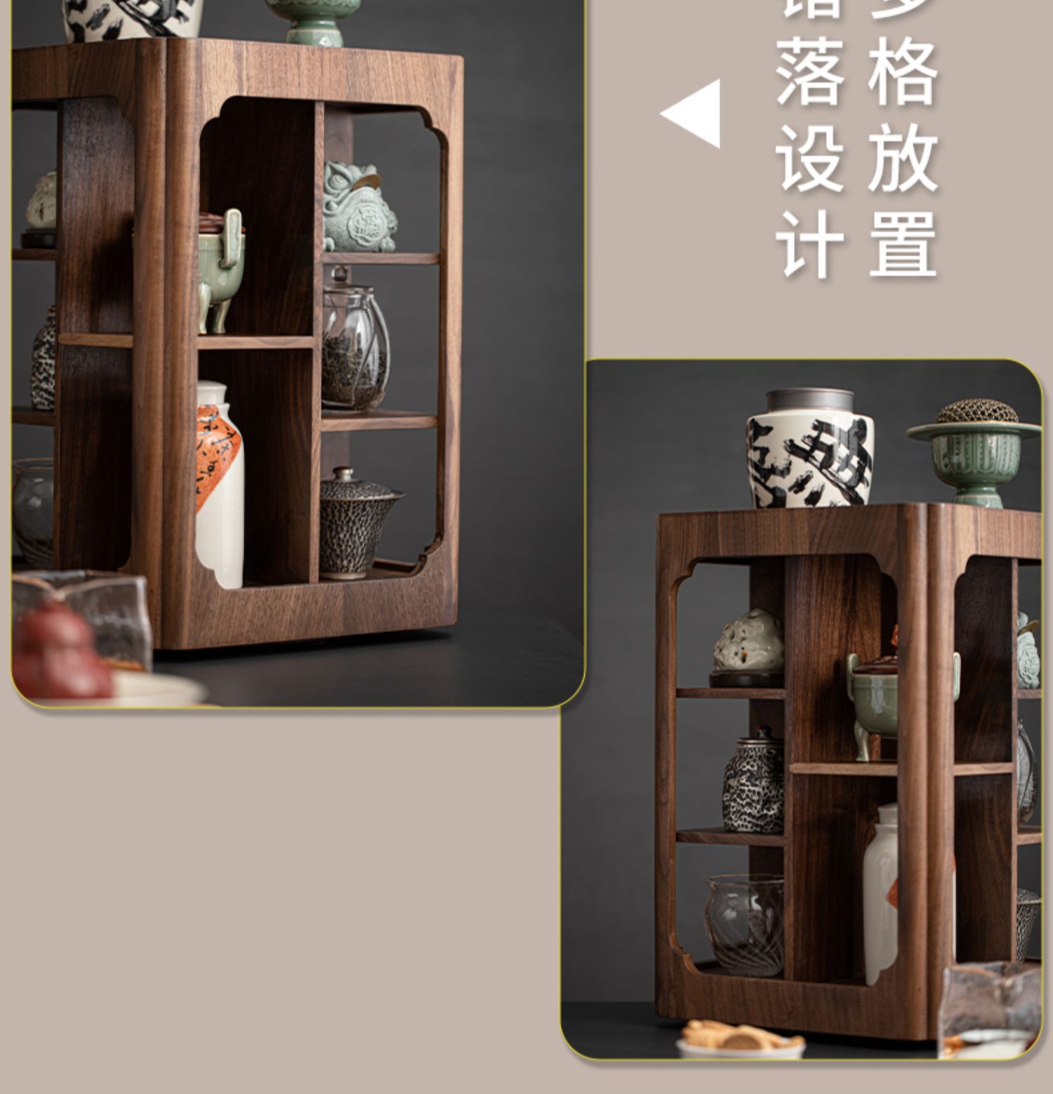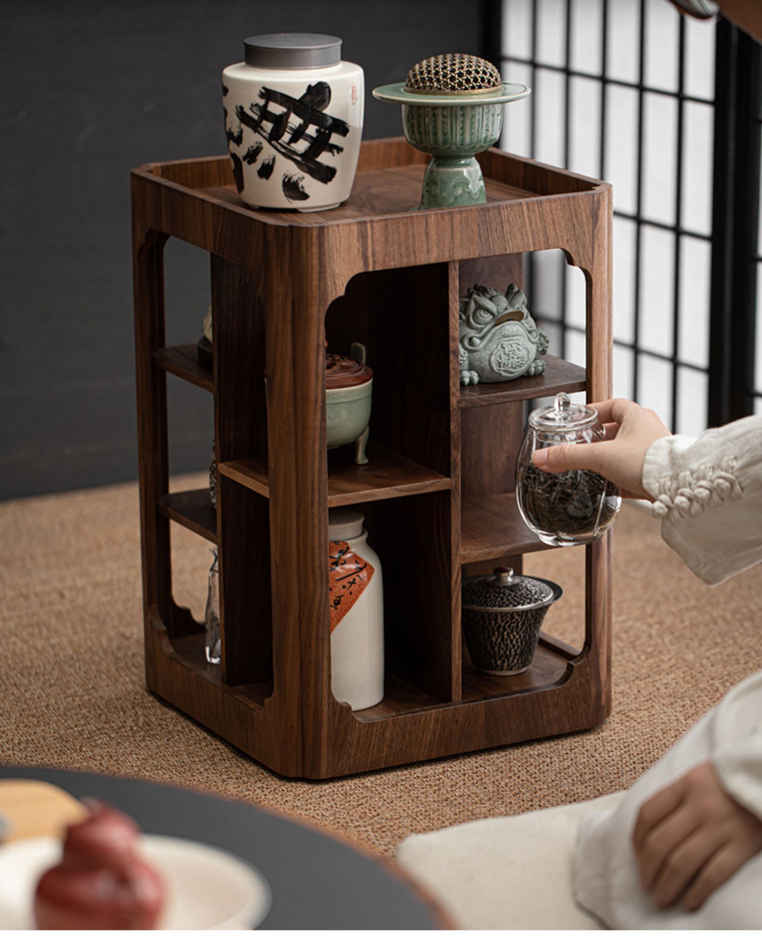 - Đồ trang trí tủ đựng trà để bàn gia dụng bằng Gỗ Óc Chó Đen Bắc Mỹ, ấm trà, kệ tách trà