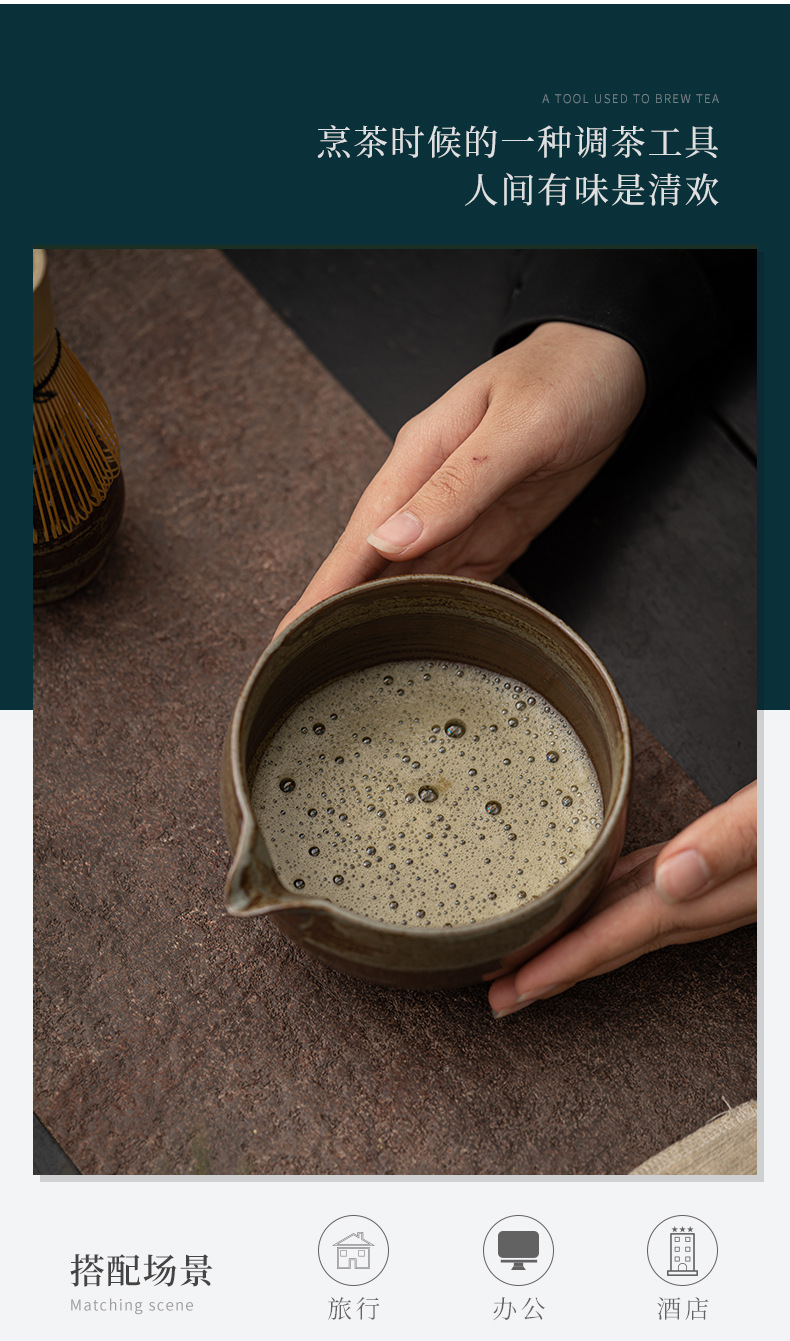 - Đồ uống trà bằng gốm thô biến đổi lò nung kiểu Nhật, bình trà sứ, bát matcha đứng, thìa matcha, phụ kiện trà đạo Baibenli Kung Fu