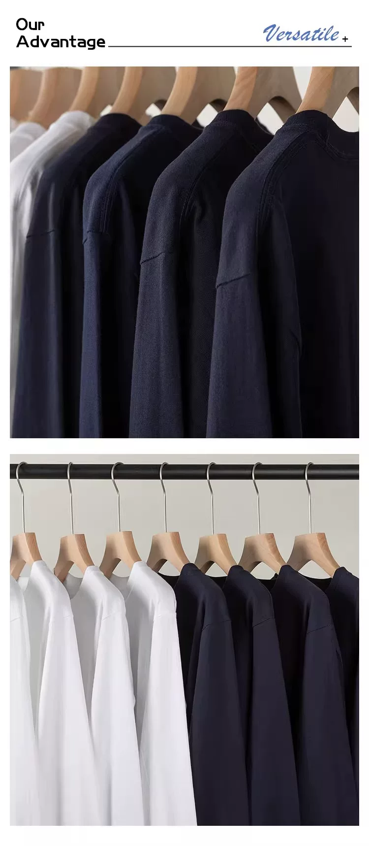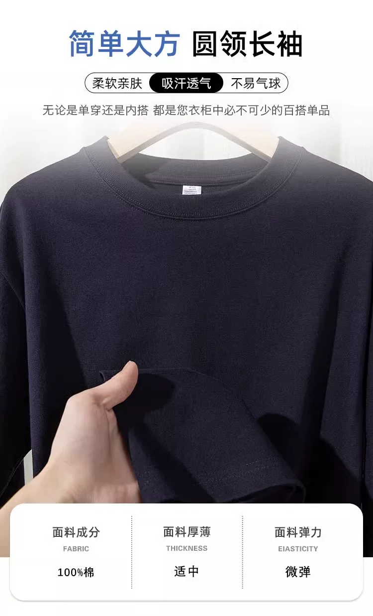 Đồ xuất khẩu dư thừa ~ Áo thun dài tay cơ bản, chất liệu dày dặn, màu xanh navy, kiểu dáng rộng rãi và đơn giản, đã được cắt mác.