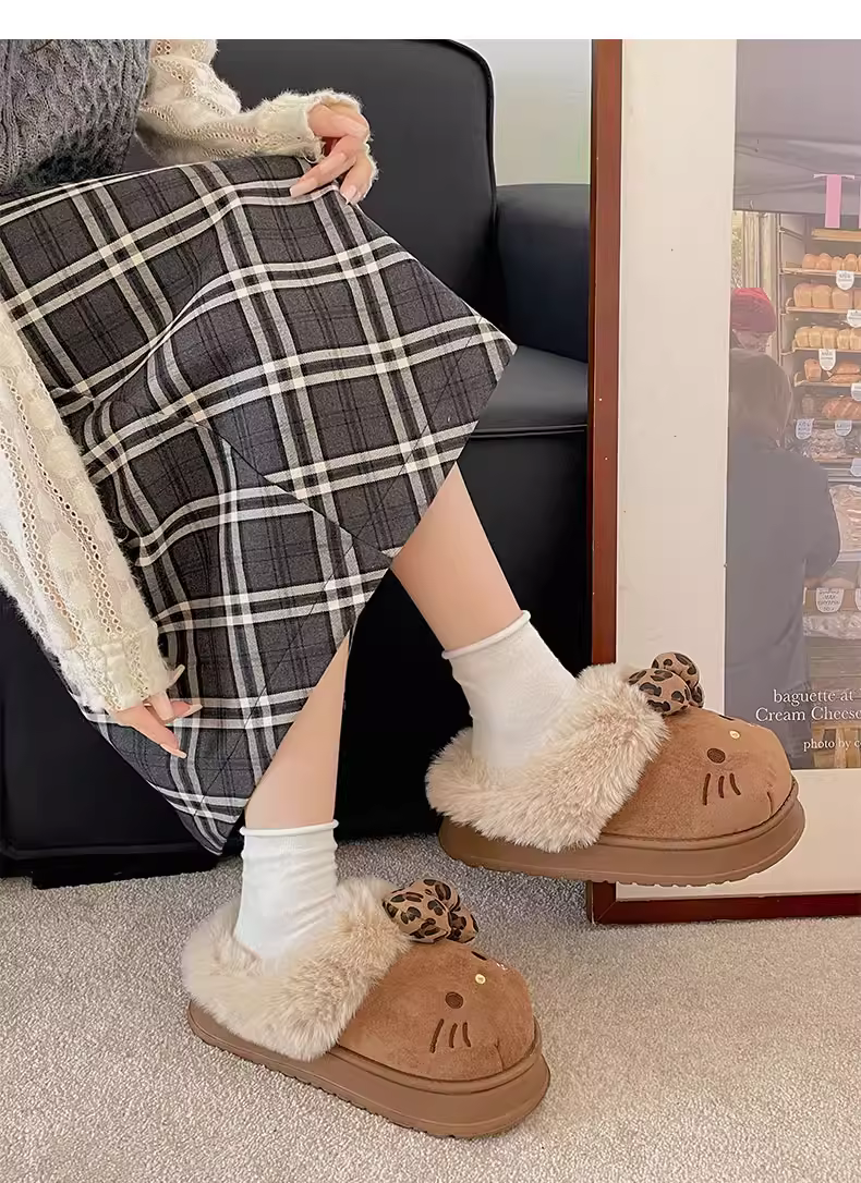 Đôi dép lông dày đế dày dễ thương dành cho nữ ở miền Nam, mẫu mới thu đông 2025, dép bông đế mềm tăng chiều cao, thích hợp đi ngoài trời.
