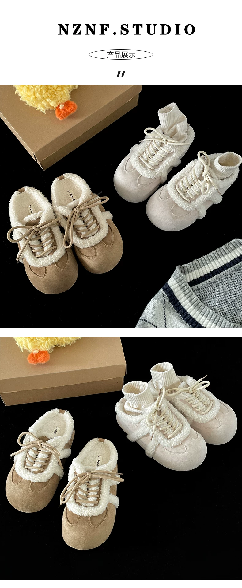 - Đôi dép lông mềm kiểu Birkenstock đế dày, kiểu retro, màu trắng dành cho nữ, mẫu mới thu đông 2025, chất liệu bông mềm mại, mũi kín.