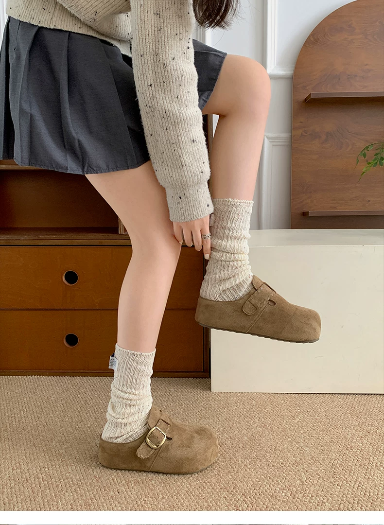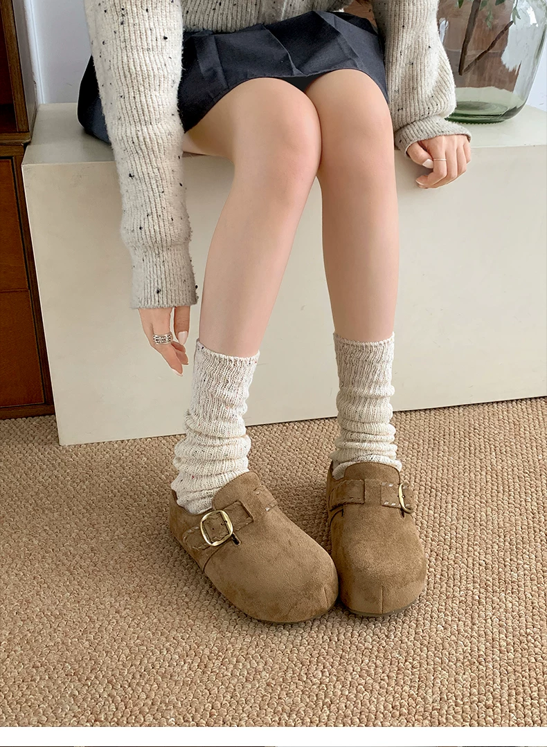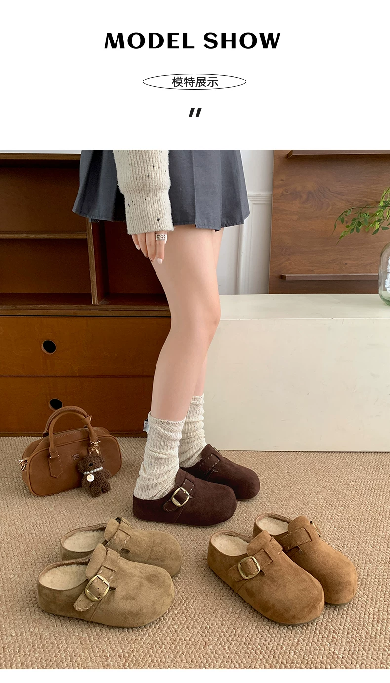 Đôi dép lông nhung nâu cổ điển đế dày dành cho nữ, mẫu mới thu đông 2025, giữ ấm, chống trơn, kiểu Birkenstock, chất liệu cotton