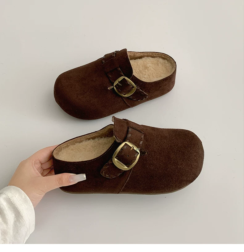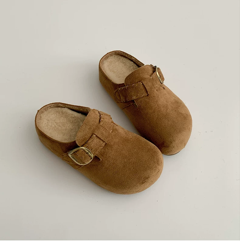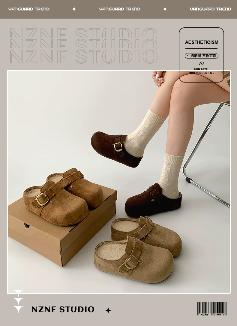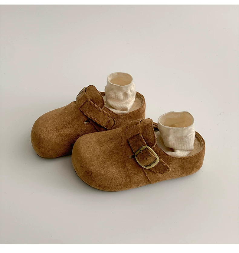 - Đôi dép lông nhung nâu cổ điển đế dày dành cho nữ, mẫu mới thu đông 2025, giữ ấm, chống trơn, kiểu Birkenstock, chất liệu cotton