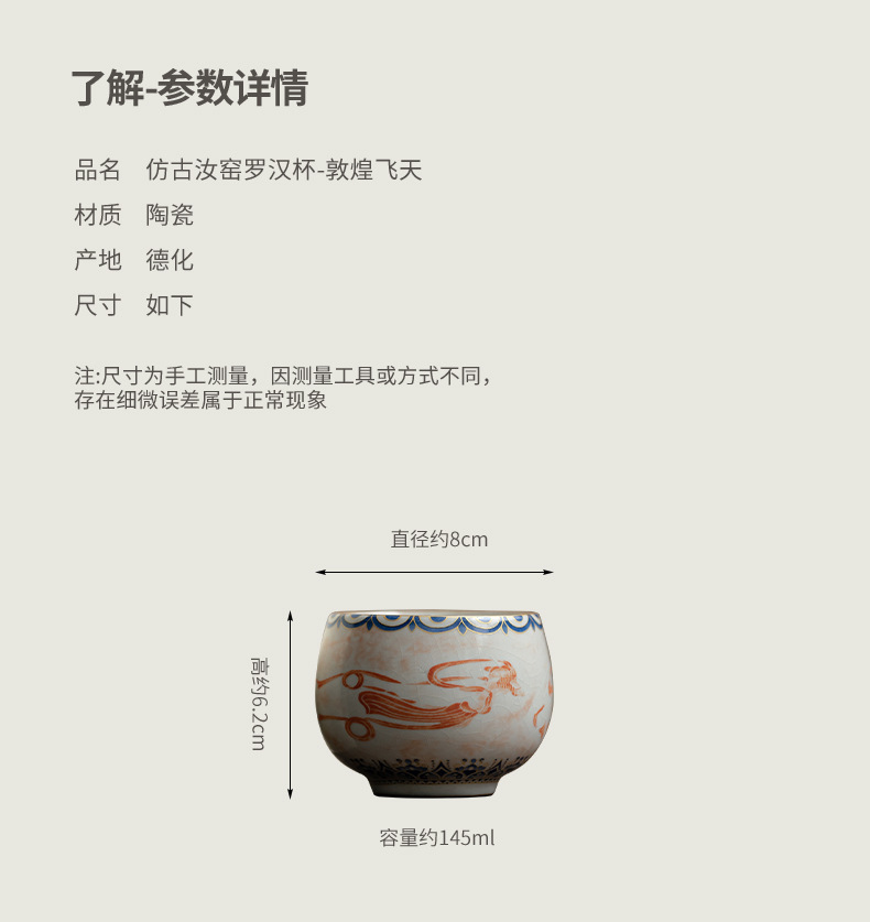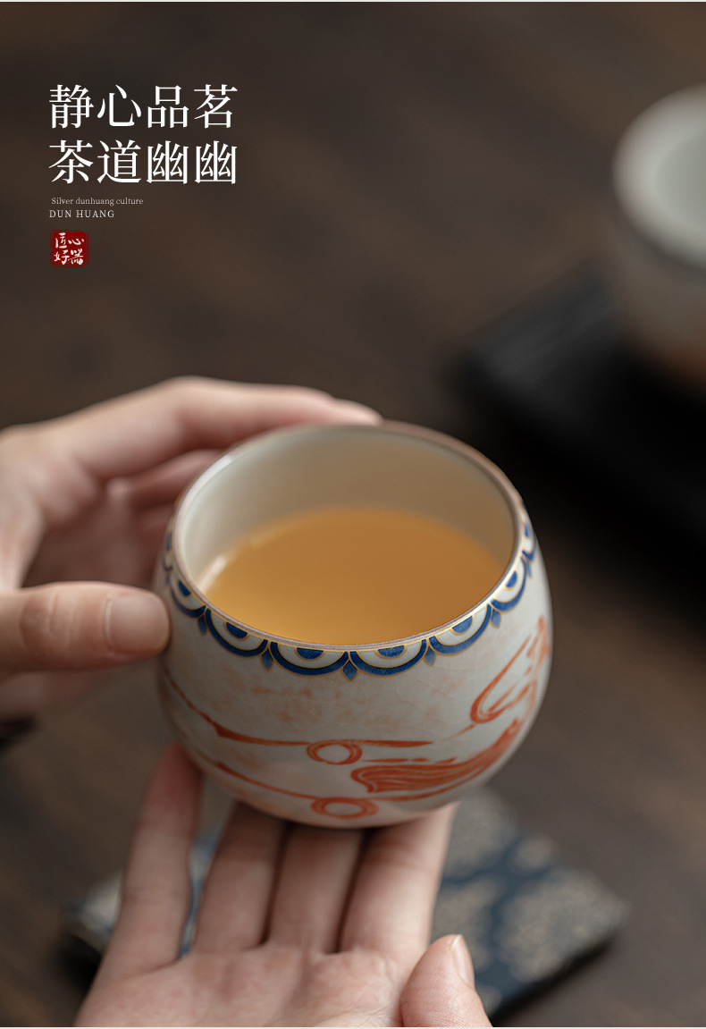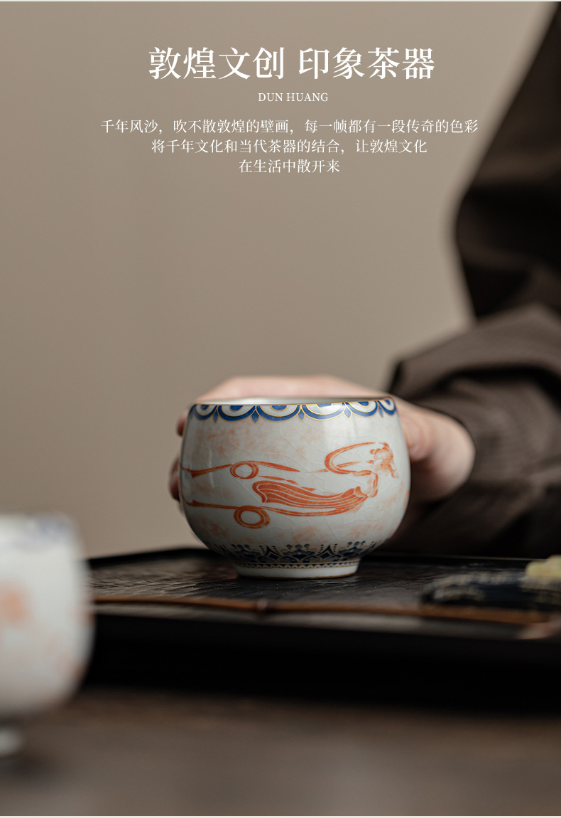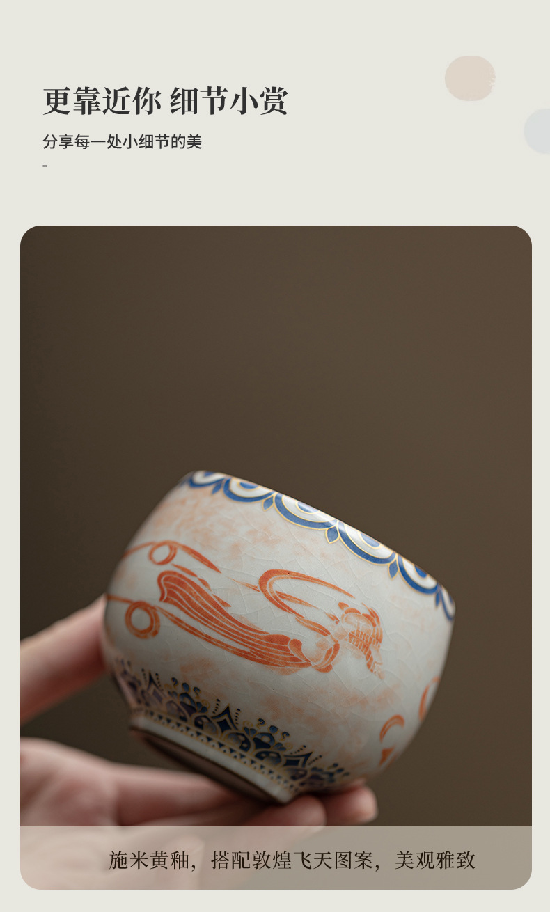 - Đôn Hoàng Feitian Luohan Cup Ru Kiln mở ra có thể nuôi gốm sứ uống trà chén gia dụng chén trà chén chủ nhân chén trà Kung Fu