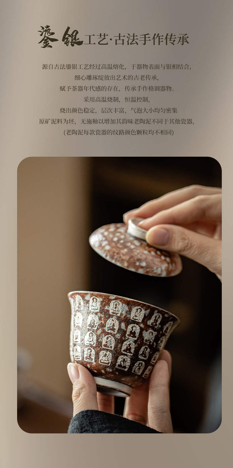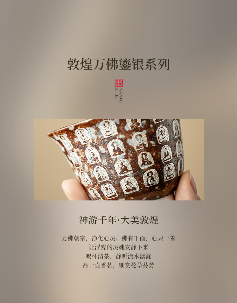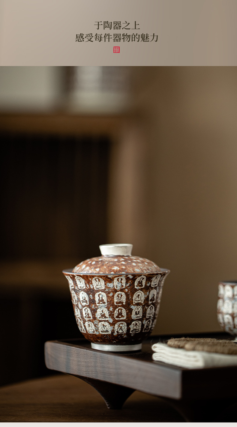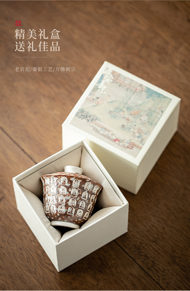 Đôn Hoàng Vạn Phật mạ bạc hai chiếc bát có nắp làm bằng gốm thô thủ công bùn đá cổ điển Bát Trà Hộp Quà Bộ trà Kung Fu