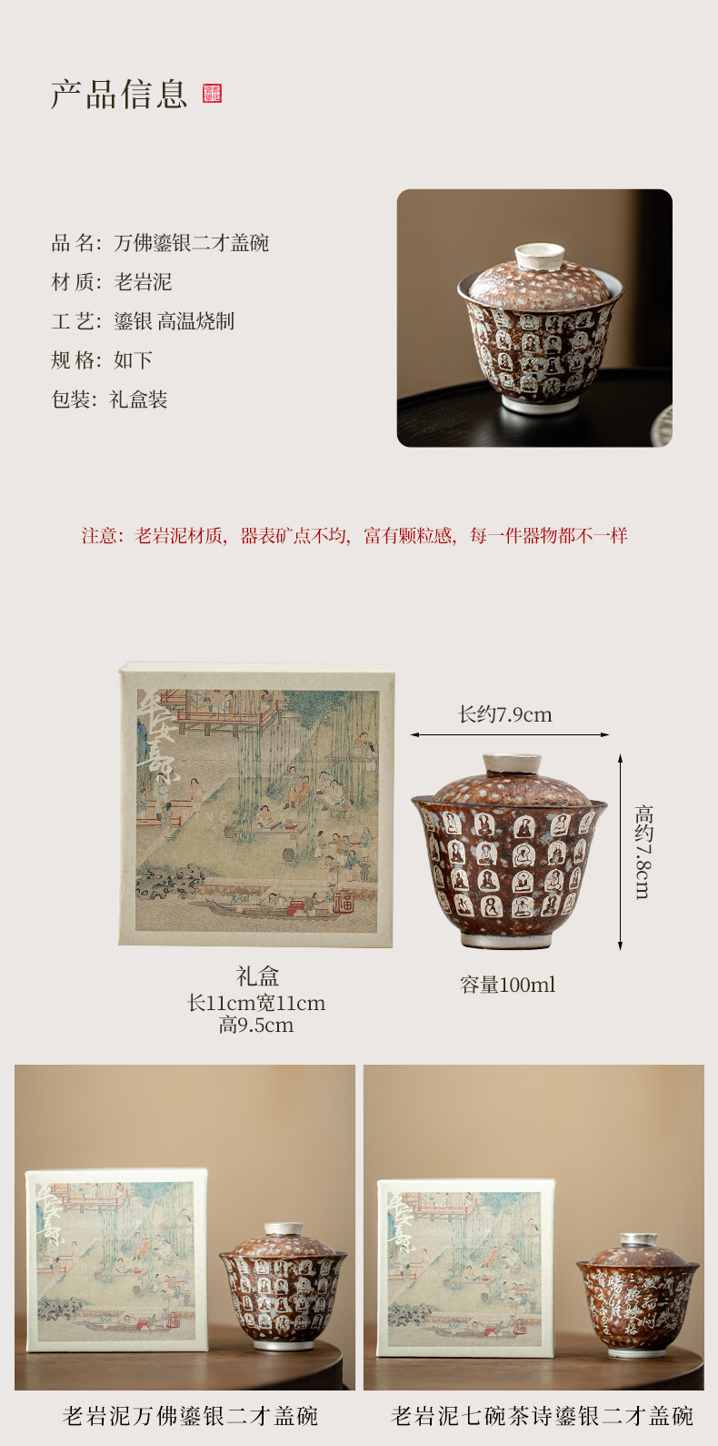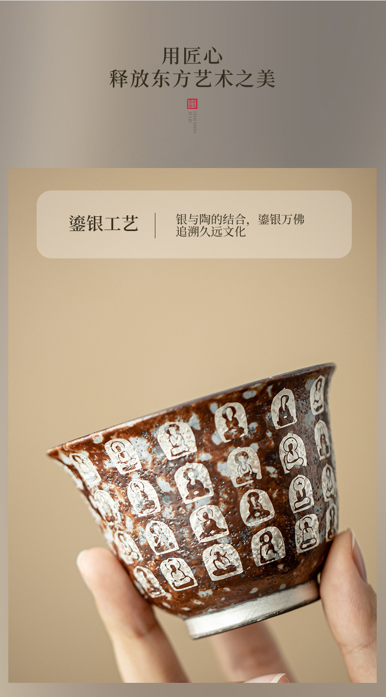 - Đôn Hoàng Vạn Phật mạ bạc hai chiếc bát có nắp làm bằng gốm thô thủ công bùn đá cổ điển Bát Trà Hộp Quà Bộ trà Kung Fu