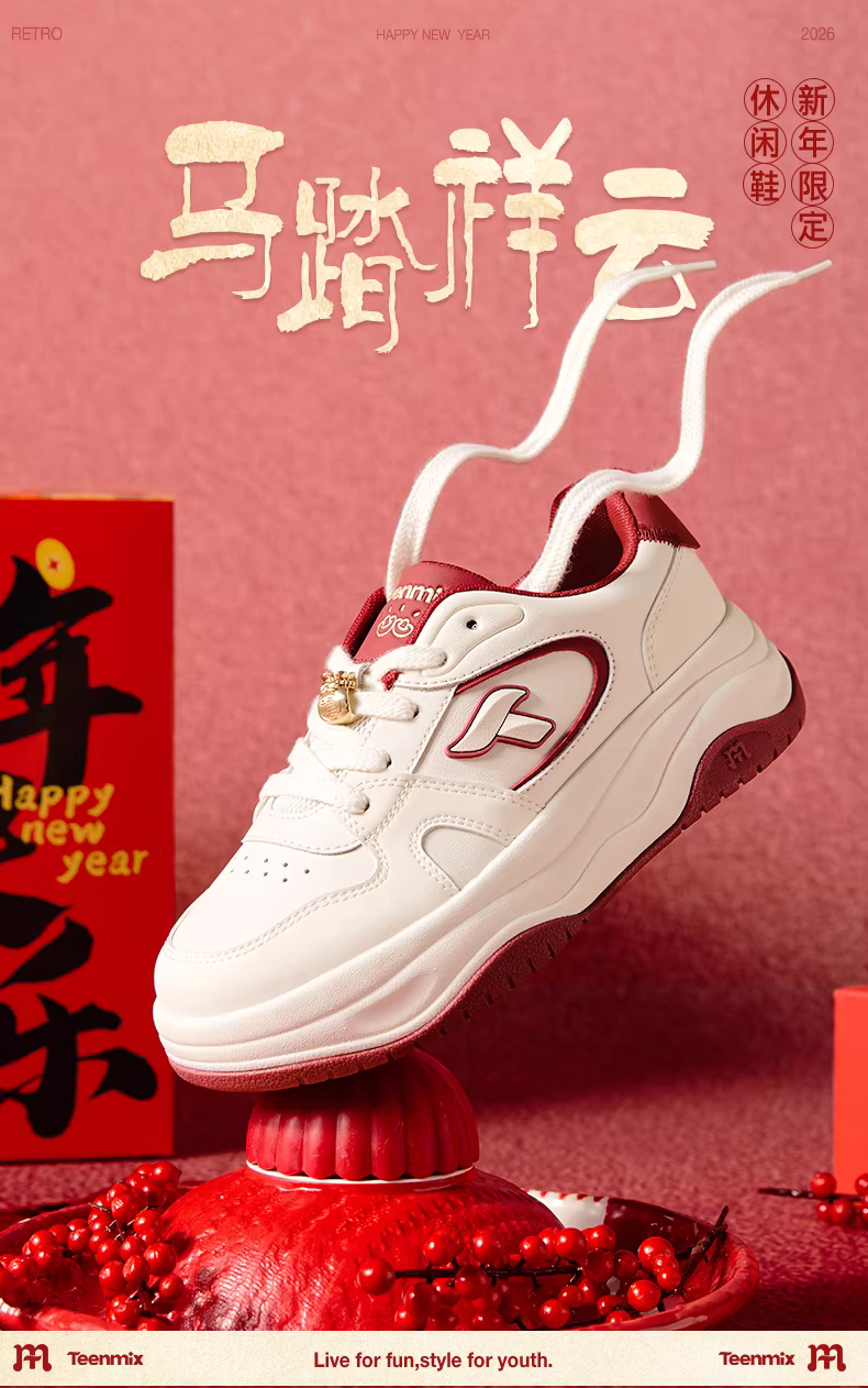 - 【Dòng sản phẩm năm con ngựa】Giày thể thao đế dày tăng chiều cao màu trắng Tianmeiyi dành cho nữ, Giày thể thao thông thường, Mẫu mới mùa xuân 2026