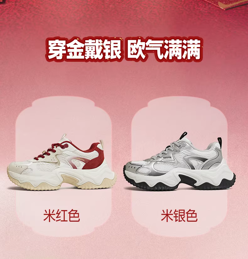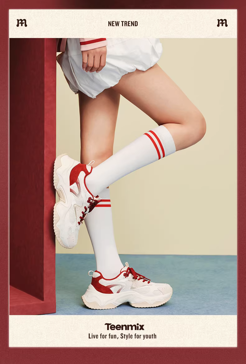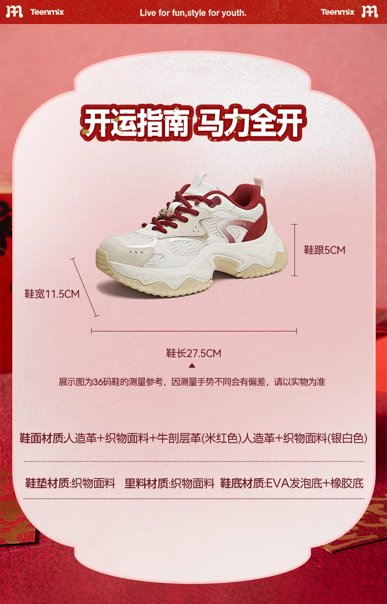 - 【Dòng sản phẩm năm con ngựa】Giày thể thao đế dày tăng chiều cao Tianmeiyi màu đỏ dành cho nữ Giày thể thao màu trắng dành cho nữ Mẫu mới mùa xuân 2026