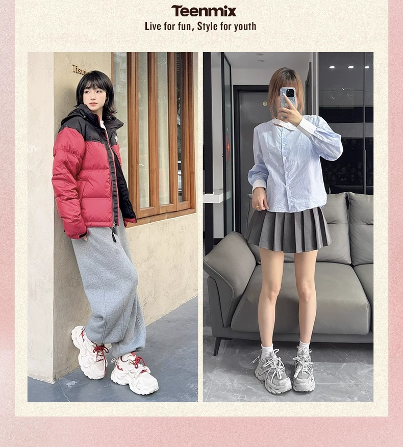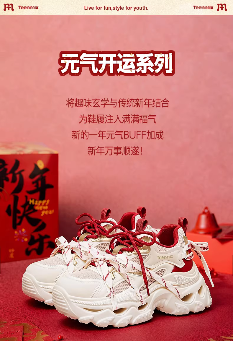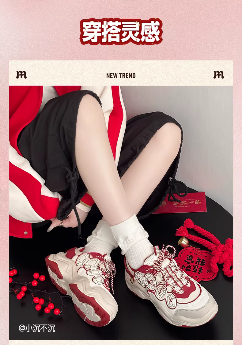 - 【Dòng sản phẩm năm con ngựa】Giày thể thao nữ đế dày tăng chiều cao có dây buộc màu đỏ Tianmeiyi 2026 Mẫu mới mùa xuân 2026