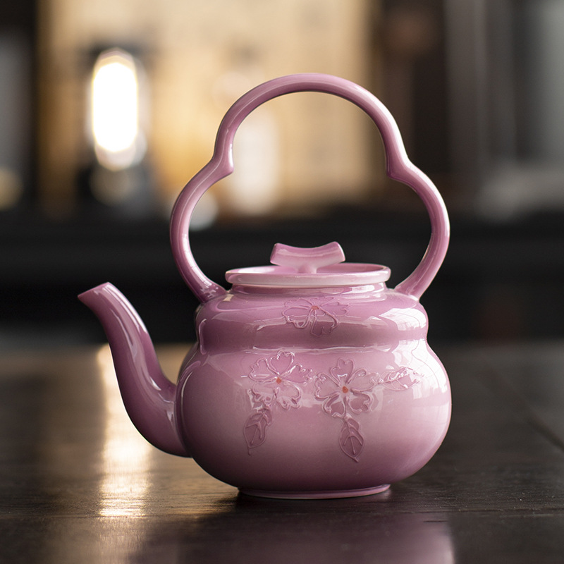 - | Don't Nian | Ấm trà Arita vẽ tay "Yunxia Purple" Ấm pha trà hoa màu tím tráng men ấm pha trà bộ trà Kung Fu gốm