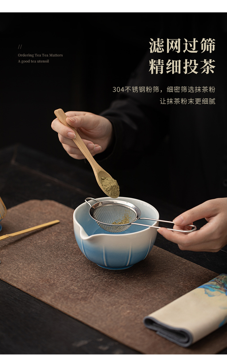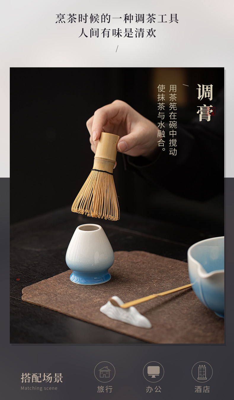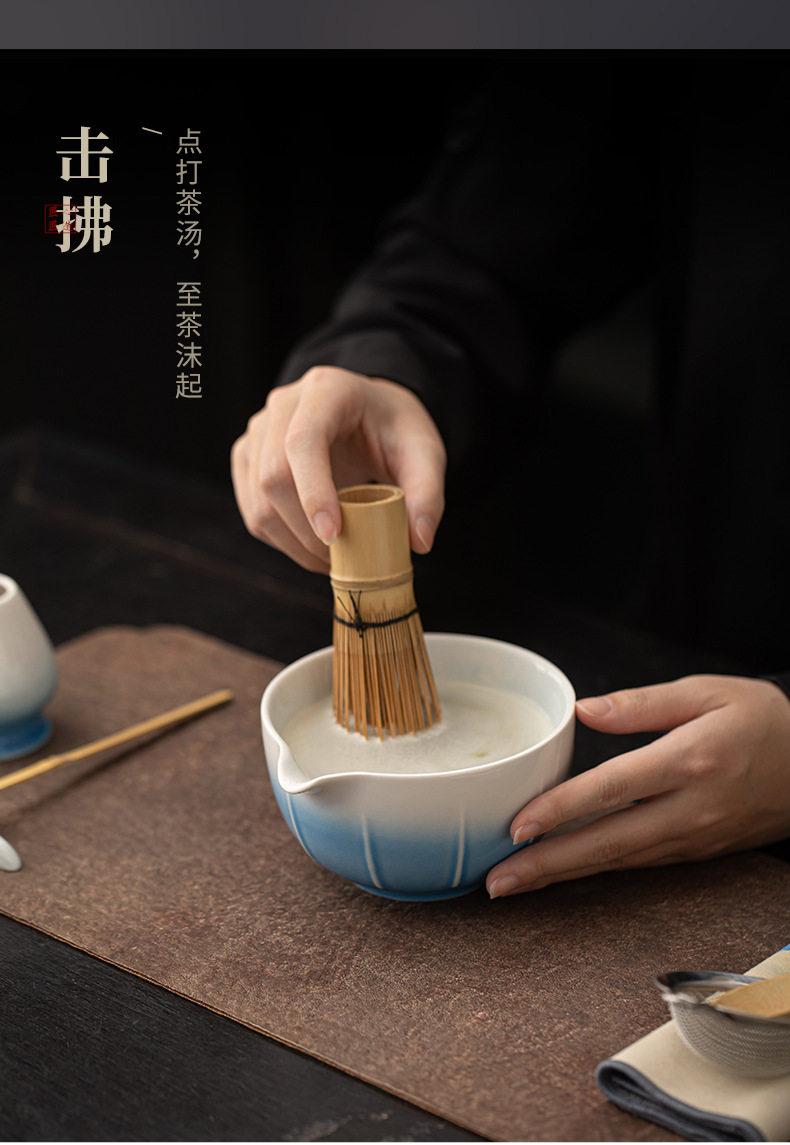 - Dưa gradient matcha Bộ trà đạo Nhật Bản gốm sứ phụ kiện trà matcha dụng cụ trà bát trà thìa trà đánh đứng
