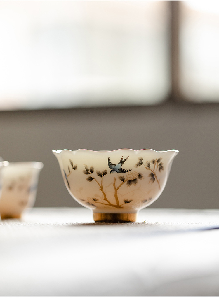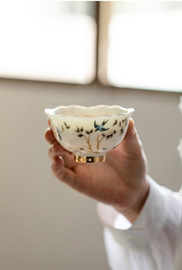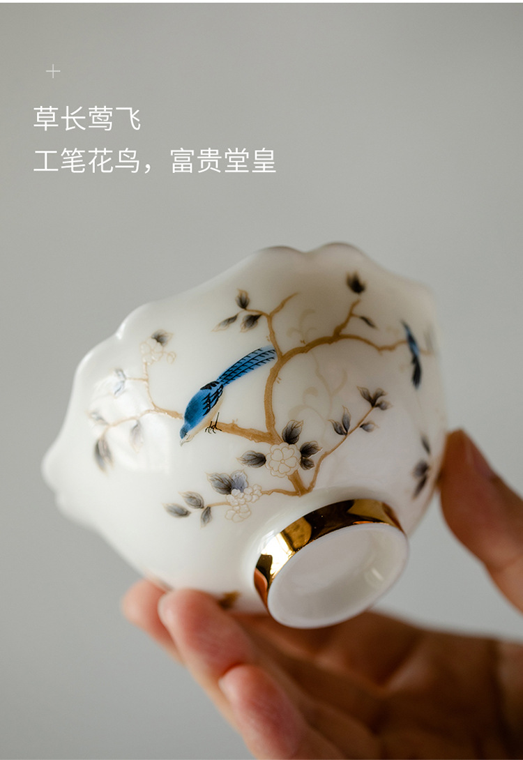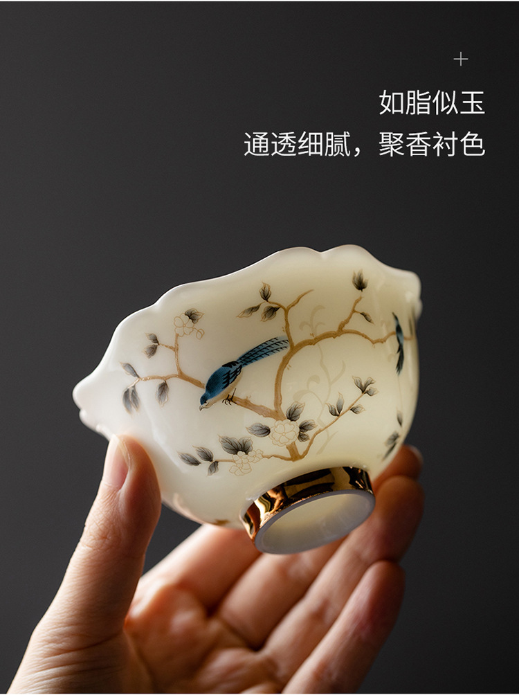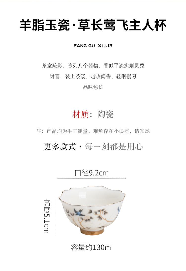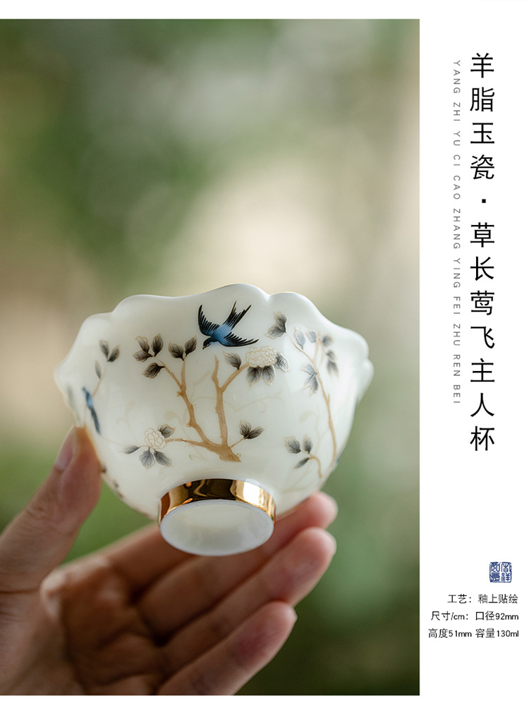Đức Hoa mỡ cừu ngọc tốt sứ trắng cao cấp cốc chủ nhân cốc trà cốc khách cốc trà gốm sứ gia dụng đơn bộ trà Kung Fu