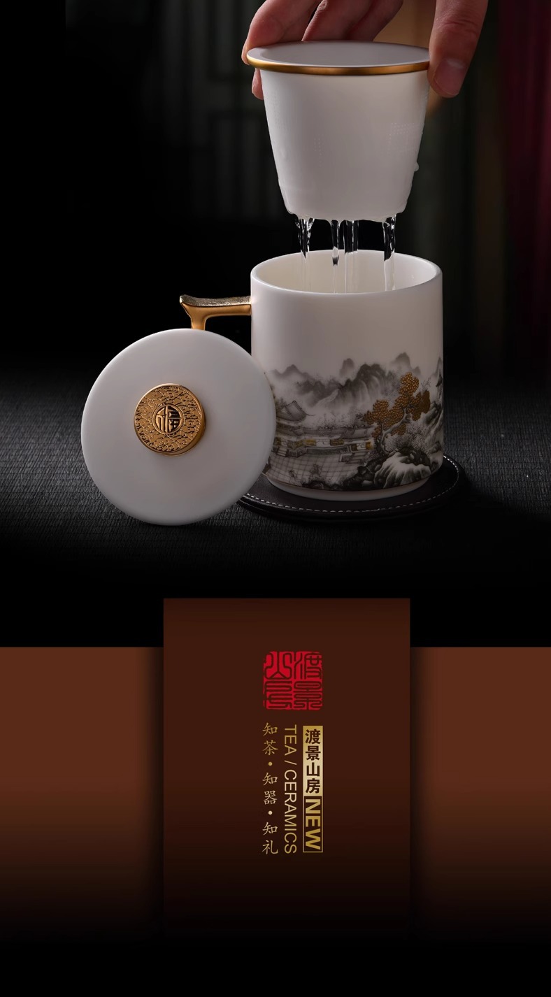 - Dujingshanfang văn phòng cốc nước cốc trà sứ trắng ngọc bích mỡ cừu quà tặng nam quà tặng khách hàng hàng đầu