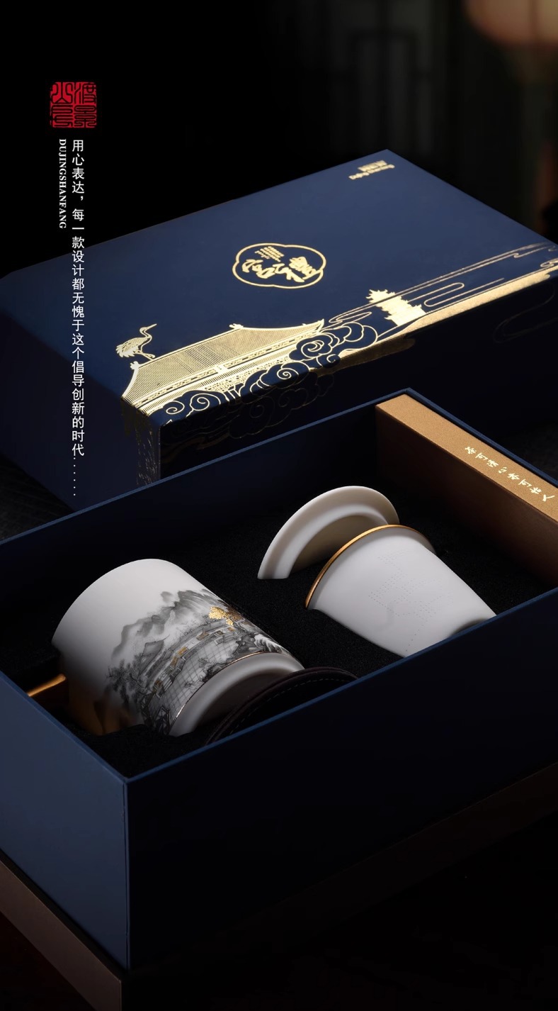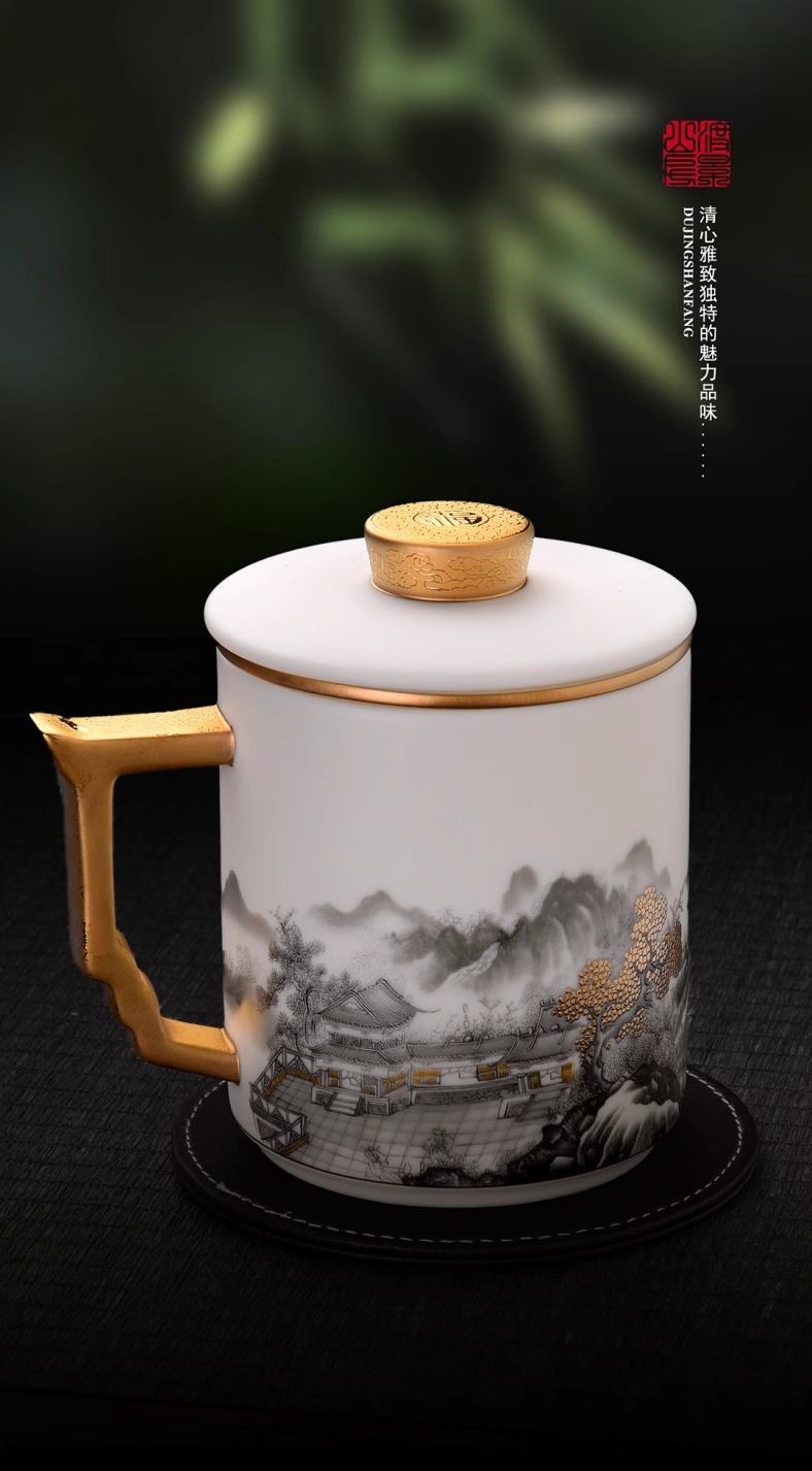 Dujingshanfang văn phòng cốc nước cốc trà sứ trắng ngọc bích mỡ cừu quà tặng nam quà tặng khách hàng hàng đầu