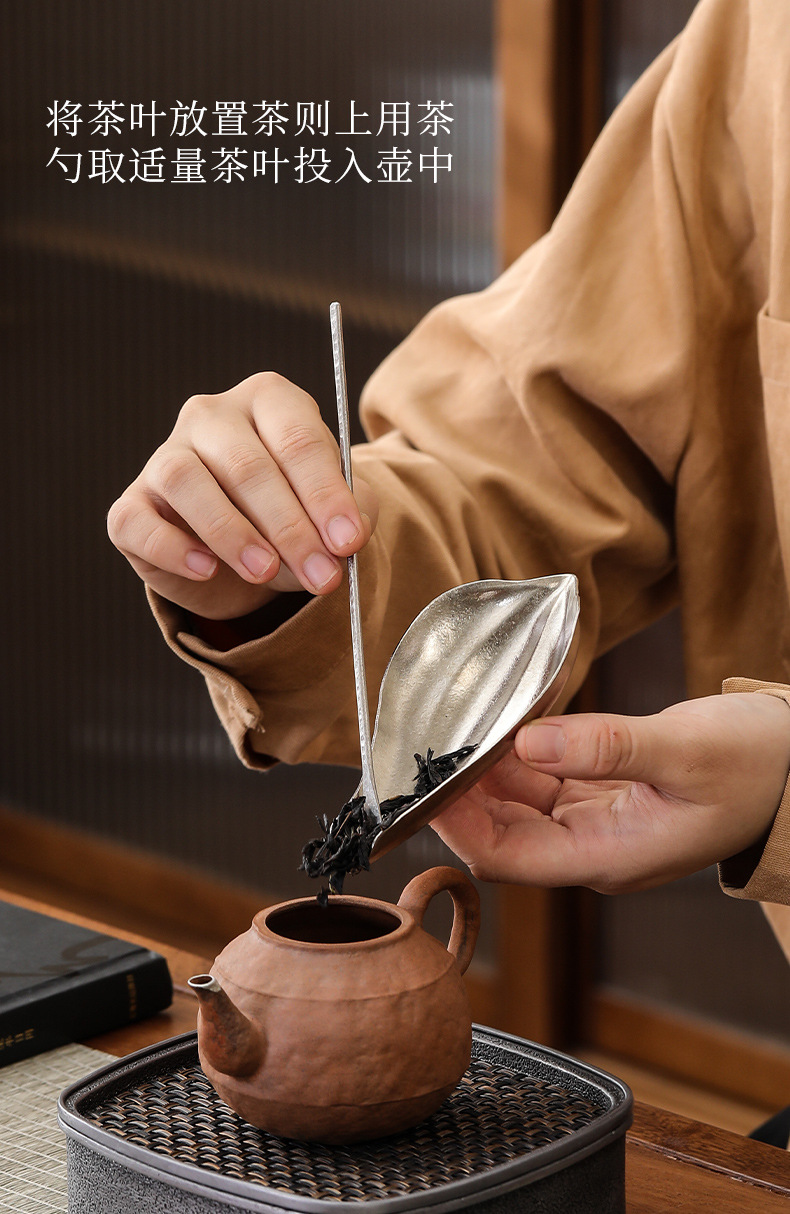 Dụng cụ đánh thức trà cánh sen titan nguyên chất mẫu mới, thìa trà, thìa trà sáng tạo, dụng cụ tách trà, phụ kiện bộ trà, bộ 2 món