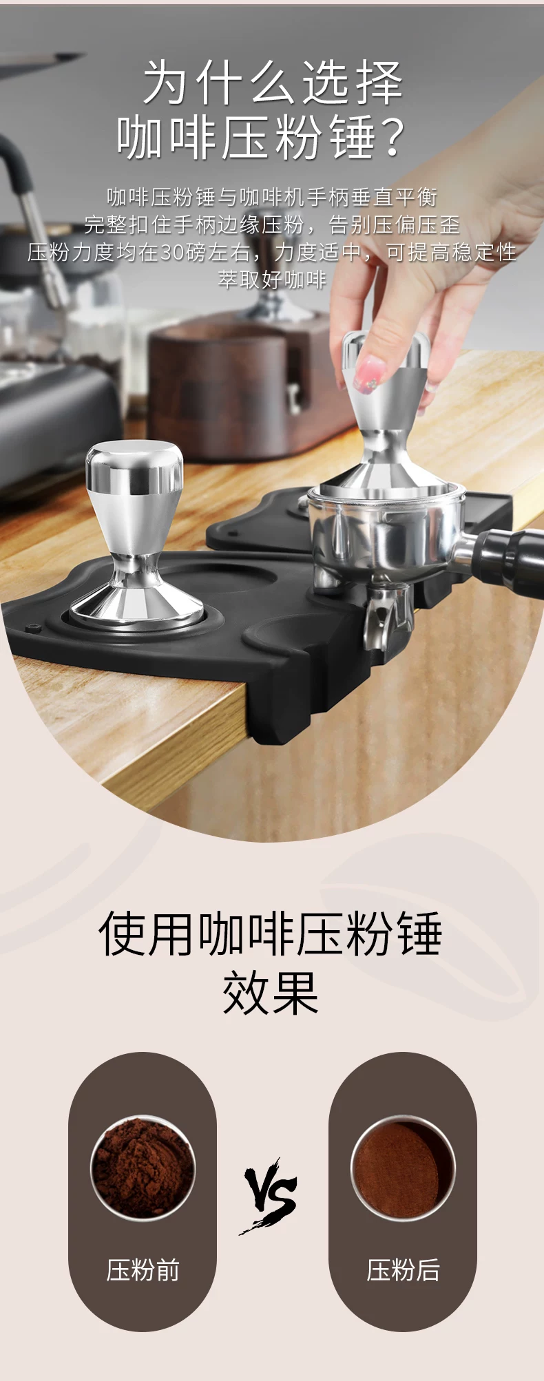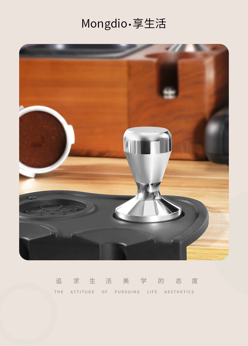 - Dụng cụ ép cà phê Mongdio bằng thép không gỉ có tay cầm bằng gỗ 51mm 58mm