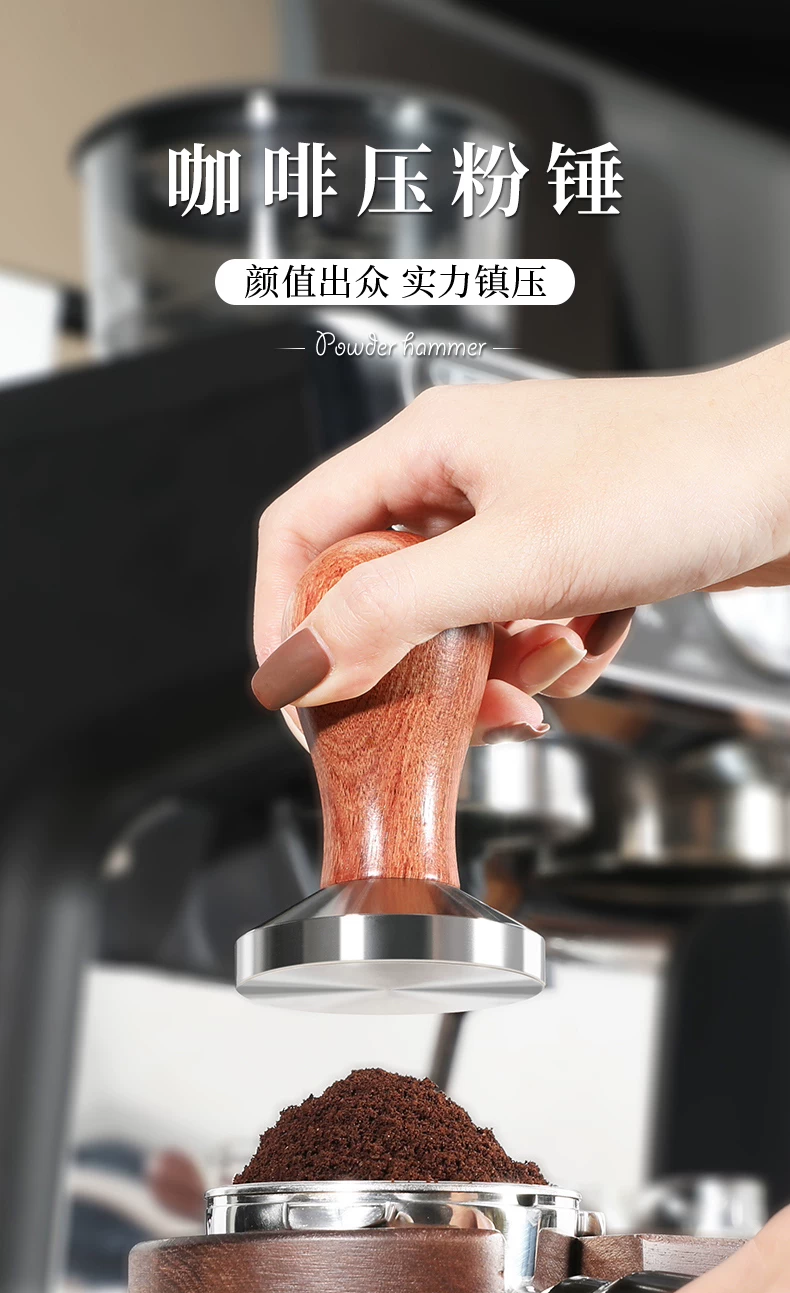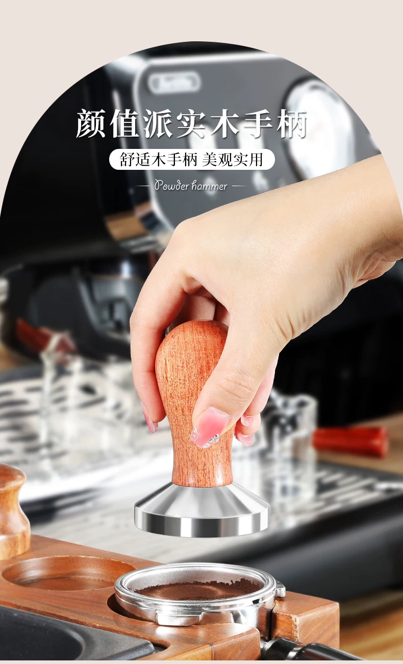 Dụng cụ ép cà phê Mongdio bằng thép không gỉ có tay cầm bằng gỗ 51mm 58mm