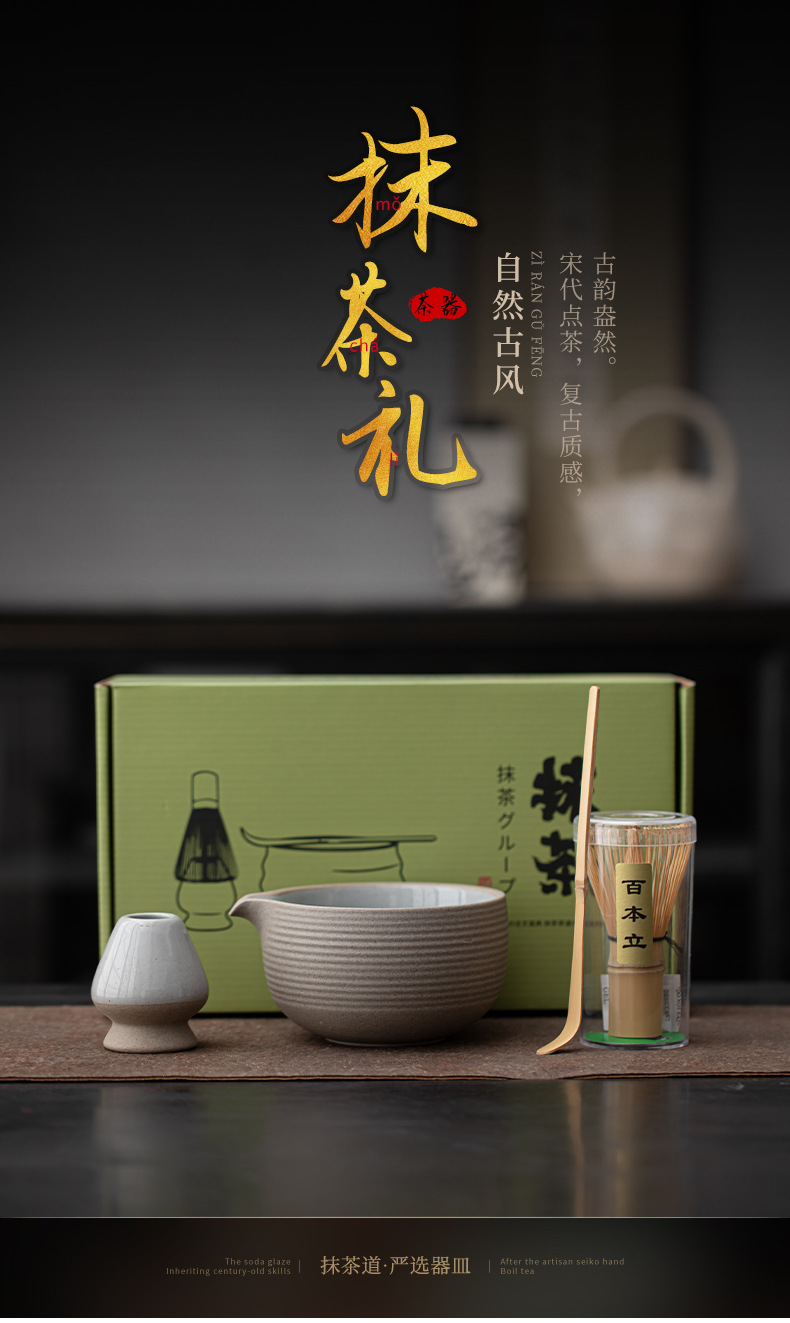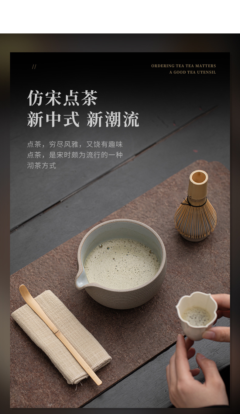 - Dụng cụ matcha tự nhiên và cổ đại Bộ dụng cụ uống trà thời Tống bình trà đứng bát matcha Baibenli Kung Fu Trà đạo