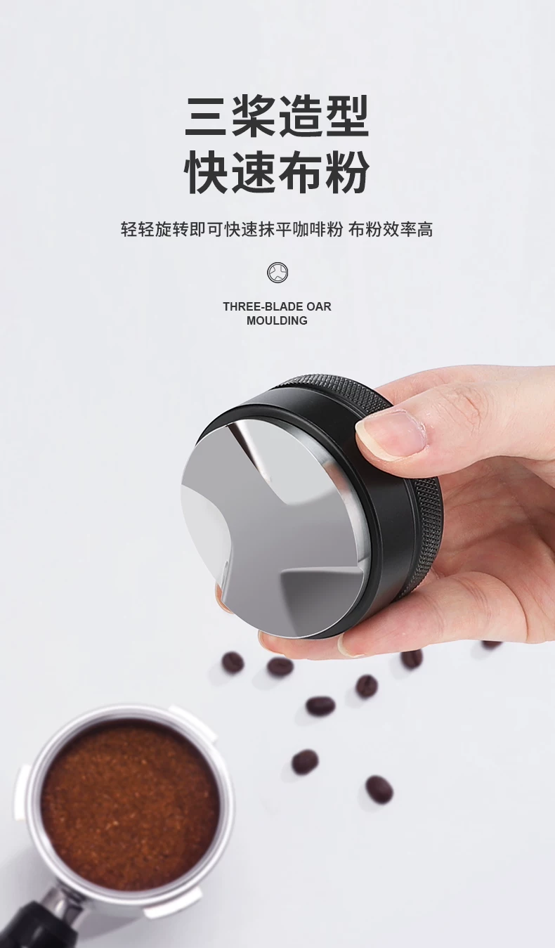 Dụng cụ nén cà phê Mongdio, dụng cụ phân phối bột, dụng cụ phân phối bột ba lớp, lưới lọc máy pha cà phê, đế nén 51mm