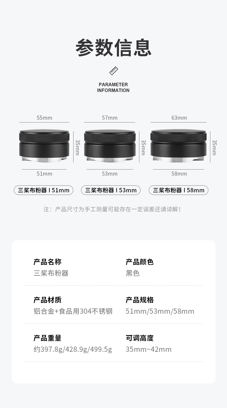 - Dụng cụ nén cà phê Mongdio, dụng cụ phân phối bột, dụng cụ phân phối bột ba lớp, lưới lọc máy pha cà phê, đế nén 51mm