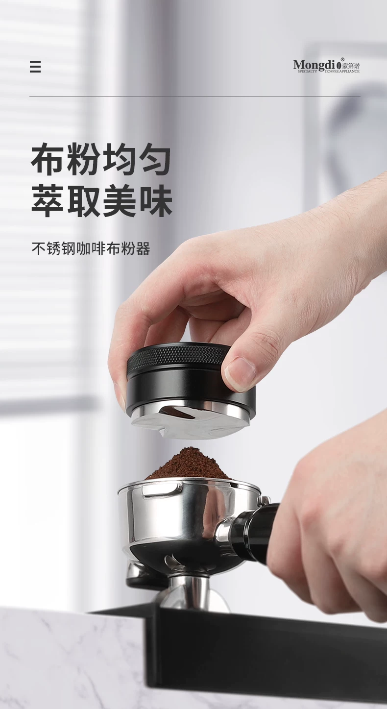 Dụng cụ nén cà phê Mongdio, máy ép cà phê, búa nén, bát đựng bột máy pha cà phê, lưới lọc 51mm, phụ kiện cà phê