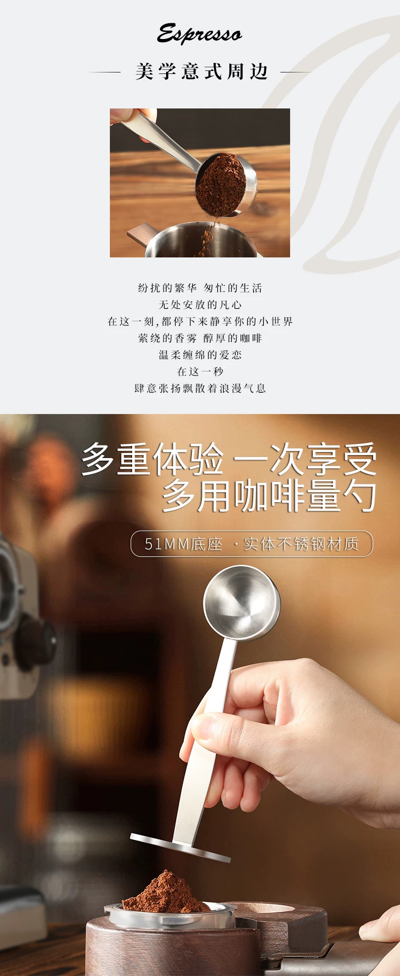 Dụng cụ nén cà phê Mongdio, thìa đo bột cà phê, thìa nén bằng thép không gỉ đa năng, búa bột máy pha cà phê espresso