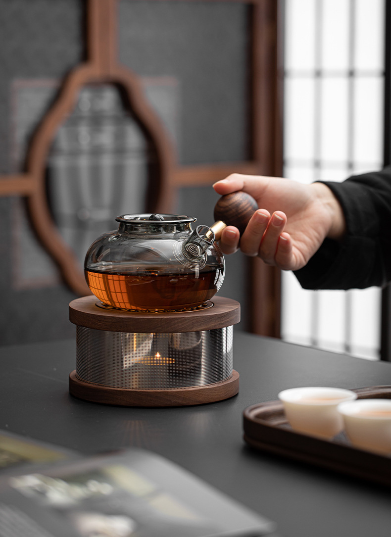 - Dụng cụ pha trà ấm bằng Gỗ Óc Chó Da'antang ấm pha trà ấm thủy tinh đế sưởi ấm Bộ trà nến sưởi ấm bếp cách nhiệt bếp pha trà