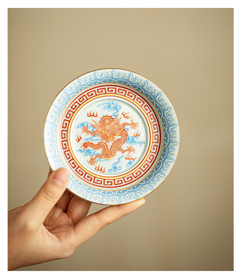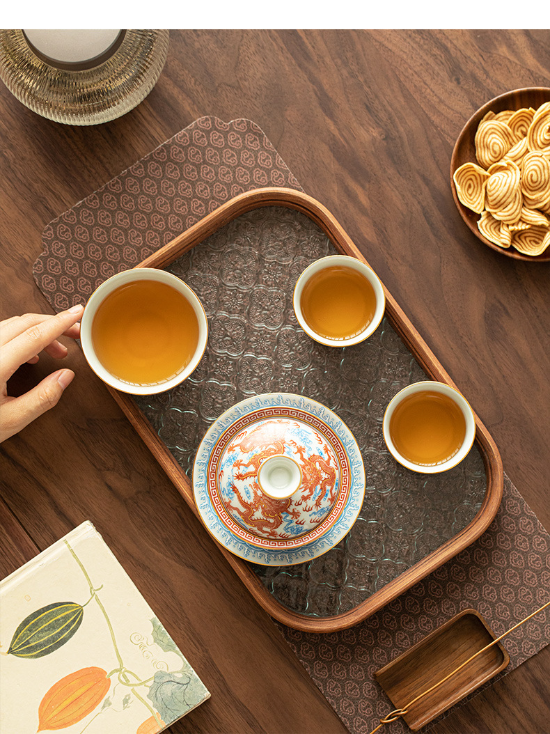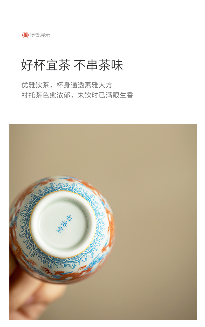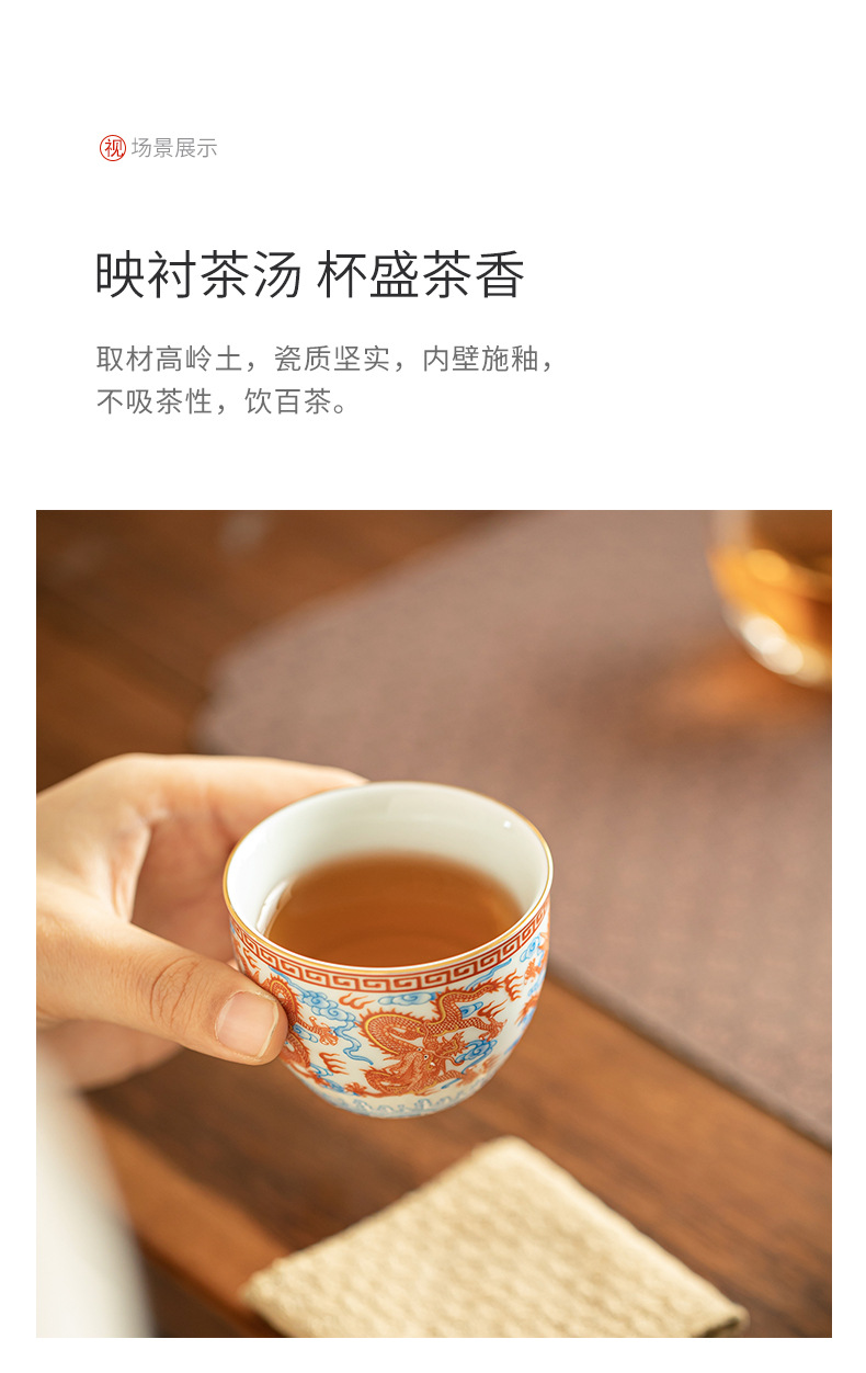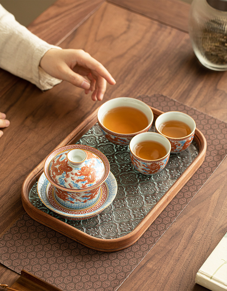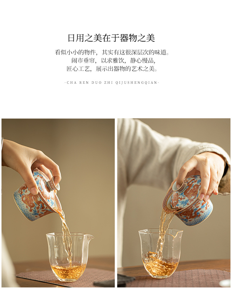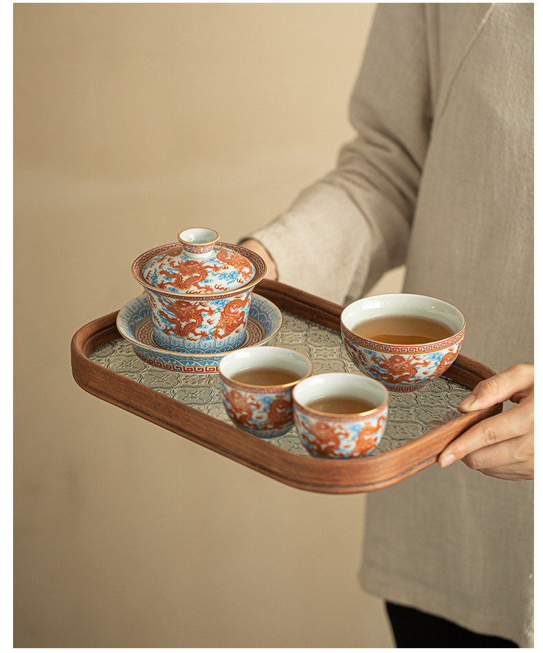 - Dụng cụ pha trà bát có nắp ba tài hoa văn rồng Công Hồng dụng cụ pha trà dụng cụ pha trà công phu gốm sứ gia dụng