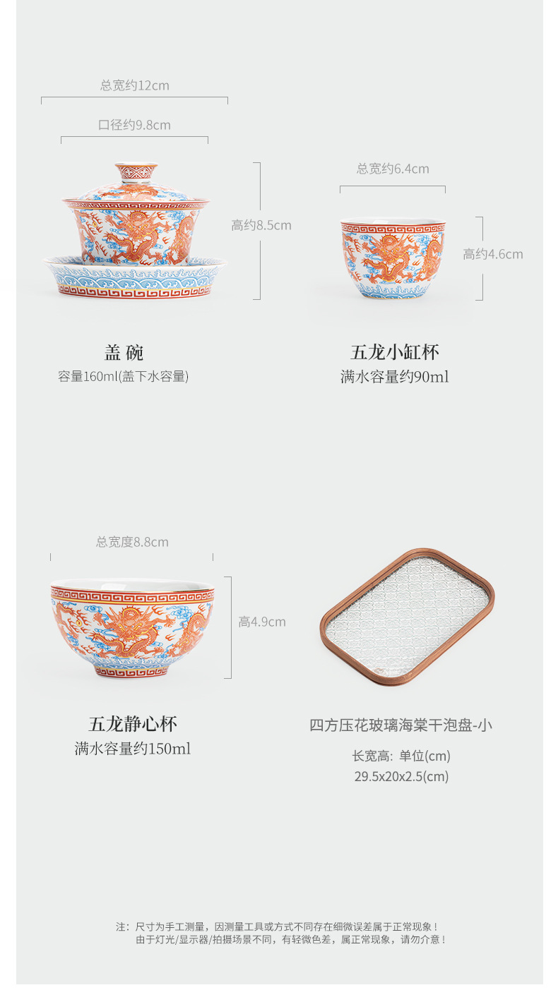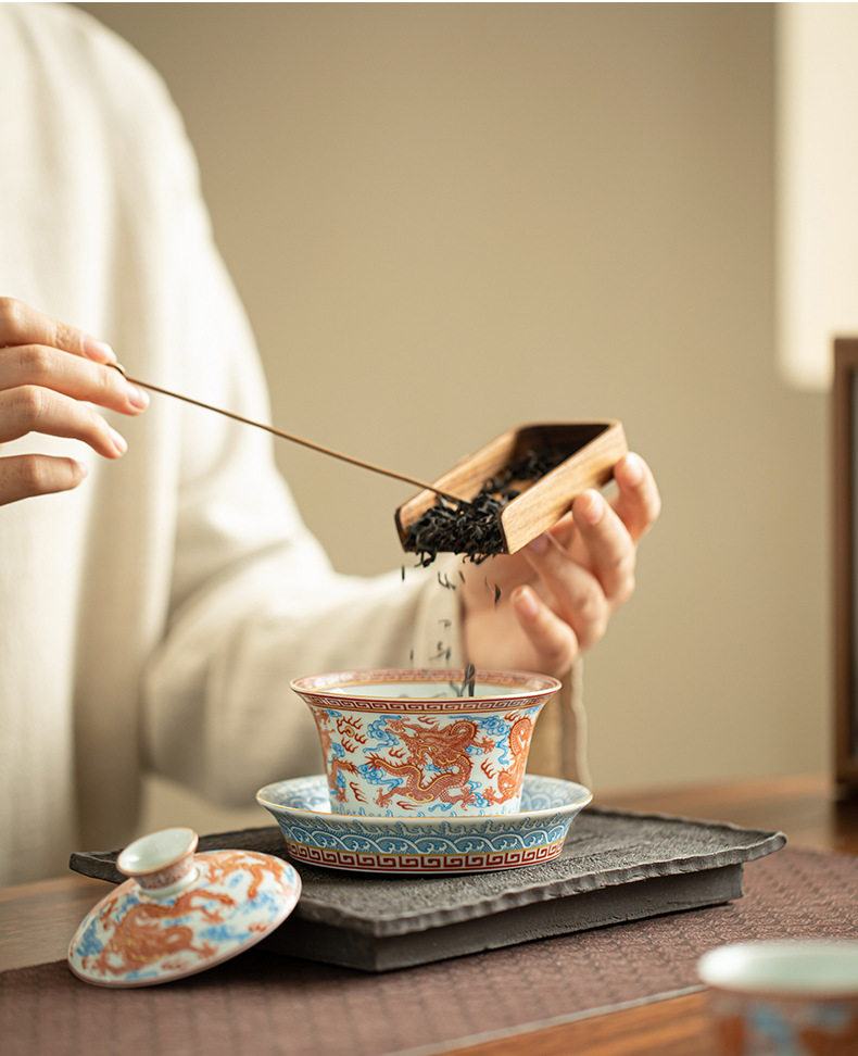 Dụng cụ pha trà bát có nắp ba tài hoa văn rồng Công Hồng dụng cụ pha trà dụng cụ pha trà công phu gốm sứ gia dụng
