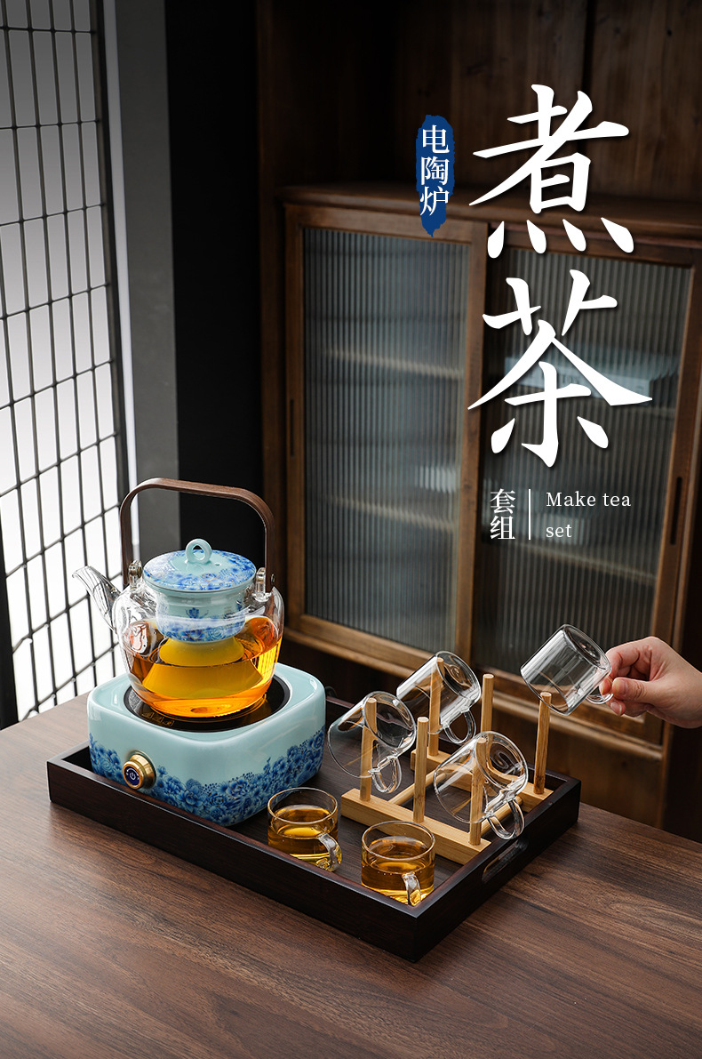 Dụng cụ pha trà bếp gốm sứ điện gia dụng bếp nấu trà trong nhà bộ ấm pha trà ấm đun nước cốc trà hộp quà