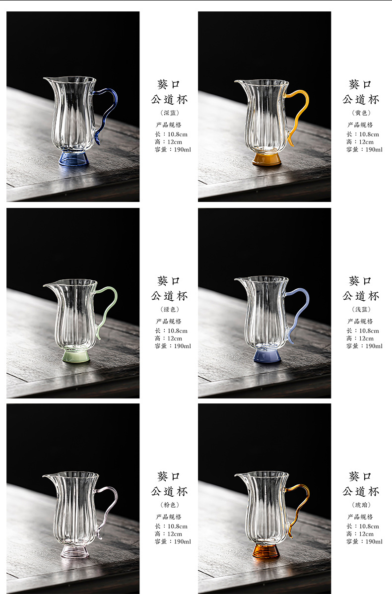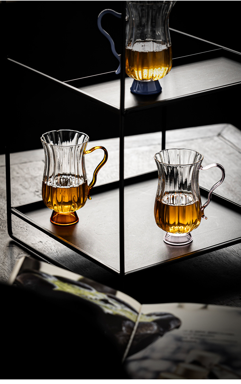 - Dụng cụ pha trà cốc thủy tinh chịu nhiệt thủ công, dụng cụ pha trà biển, dụng cụ pha trà hình hoa borosilicat cao, tay cầm màu, miệng đại bàng
