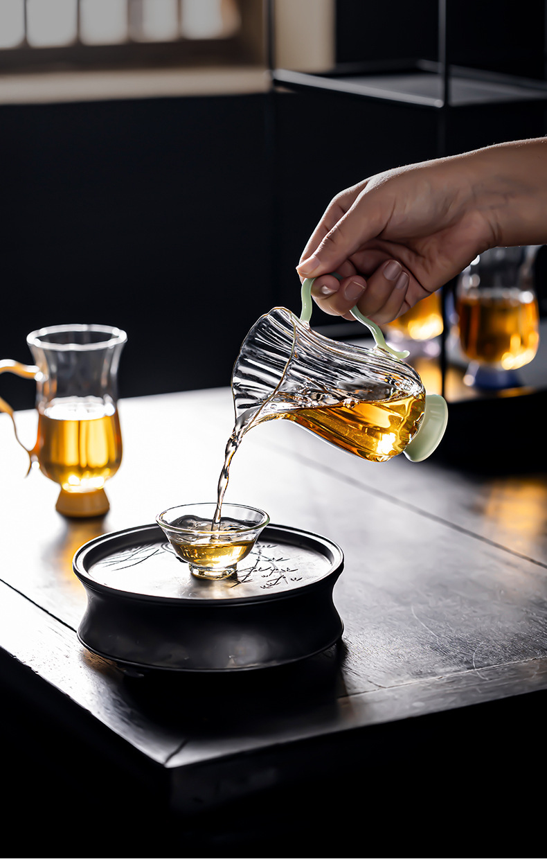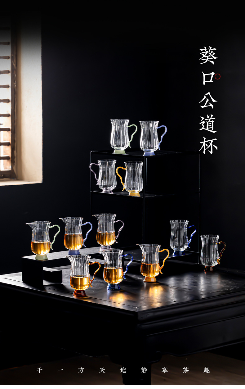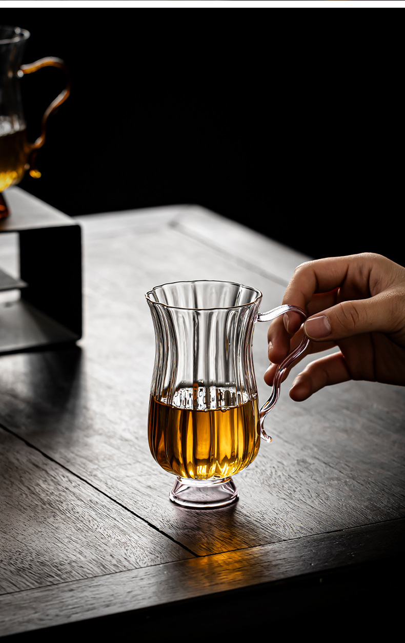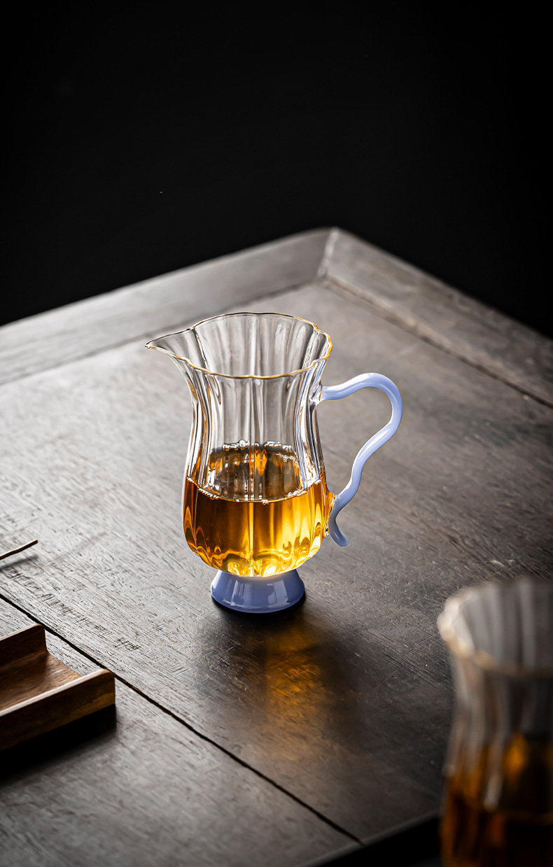 Dụng cụ pha trà cốc thủy tinh chịu nhiệt thủ công, dụng cụ pha trà biển, dụng cụ pha trà hình hoa borosilicat cao, tay cầm màu, miệng đại bàng