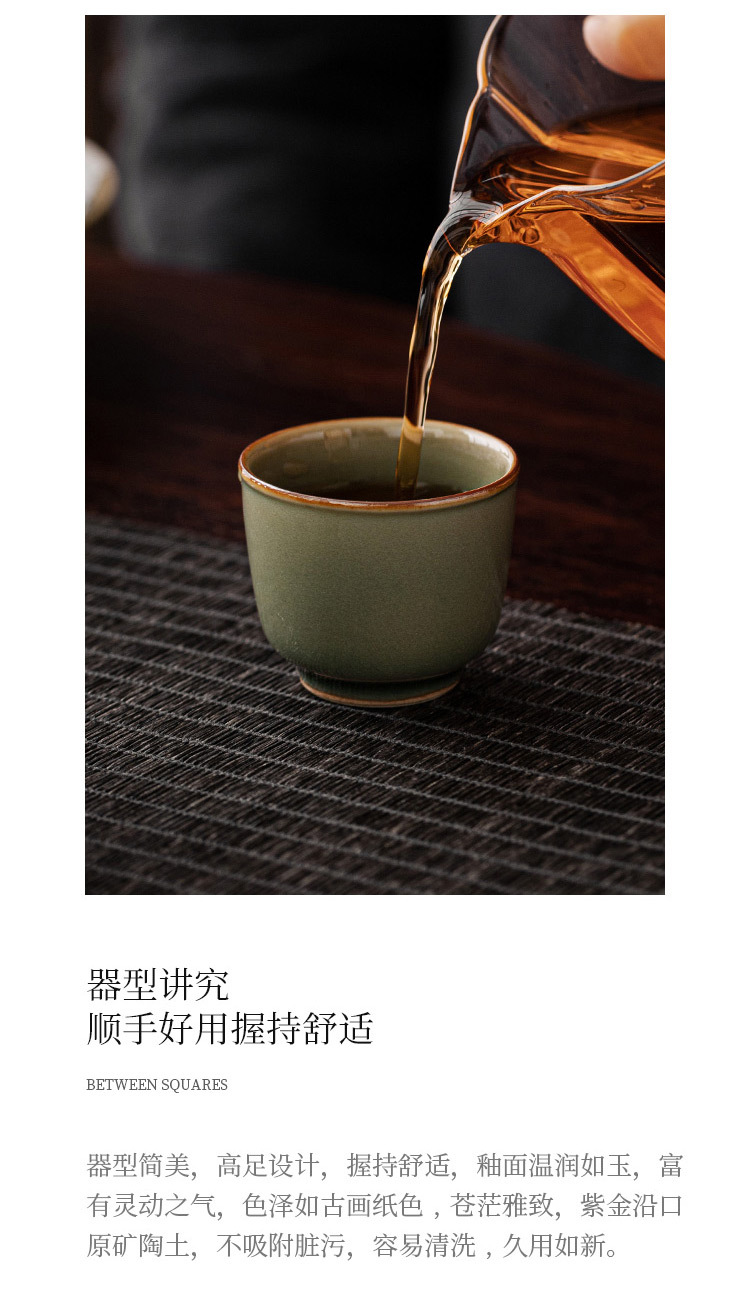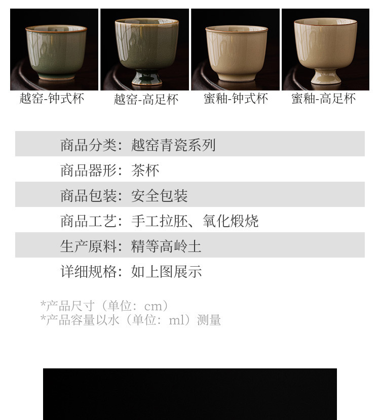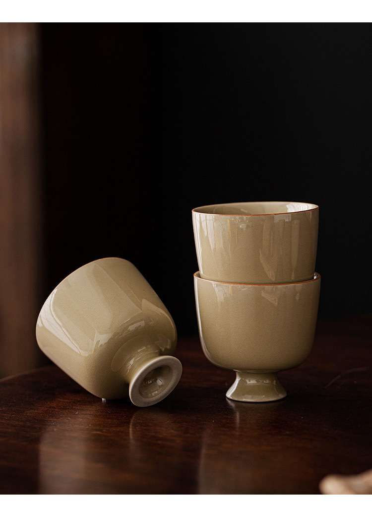 - Dụng cụ pha trà Kung Fu bằng men ngọc Yue Kiln Cốc pha trà gia dụng gốm sứ Cốc chủ nhân Cốc đơn Cốc Trà Chân Cao Cổ Điển Cốc trà