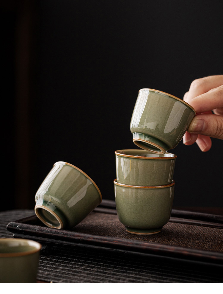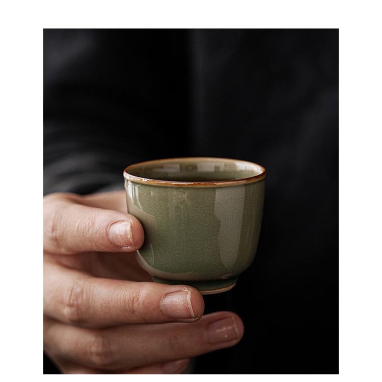 Dụng cụ pha trà Kung Fu bằng men ngọc Yue Kiln Cốc pha trà gia dụng gốm sứ Cốc chủ nhân Cốc đơn Cốc Trà Chân Cao Cổ Điển Cốc trà