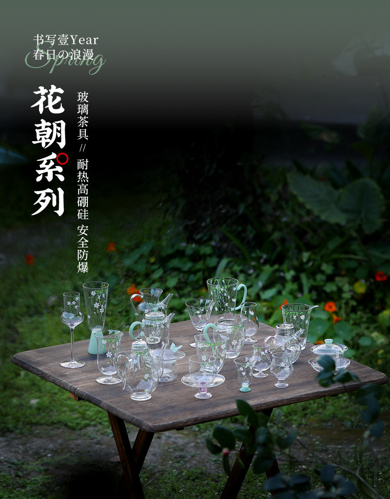 Dụng cụ pha trà Kung Fu nhỏ tươi mát ấm trà giả thời nhà Tống ấm trà xanh thủy tinh borosilicat cao ấm trà ấm đơn