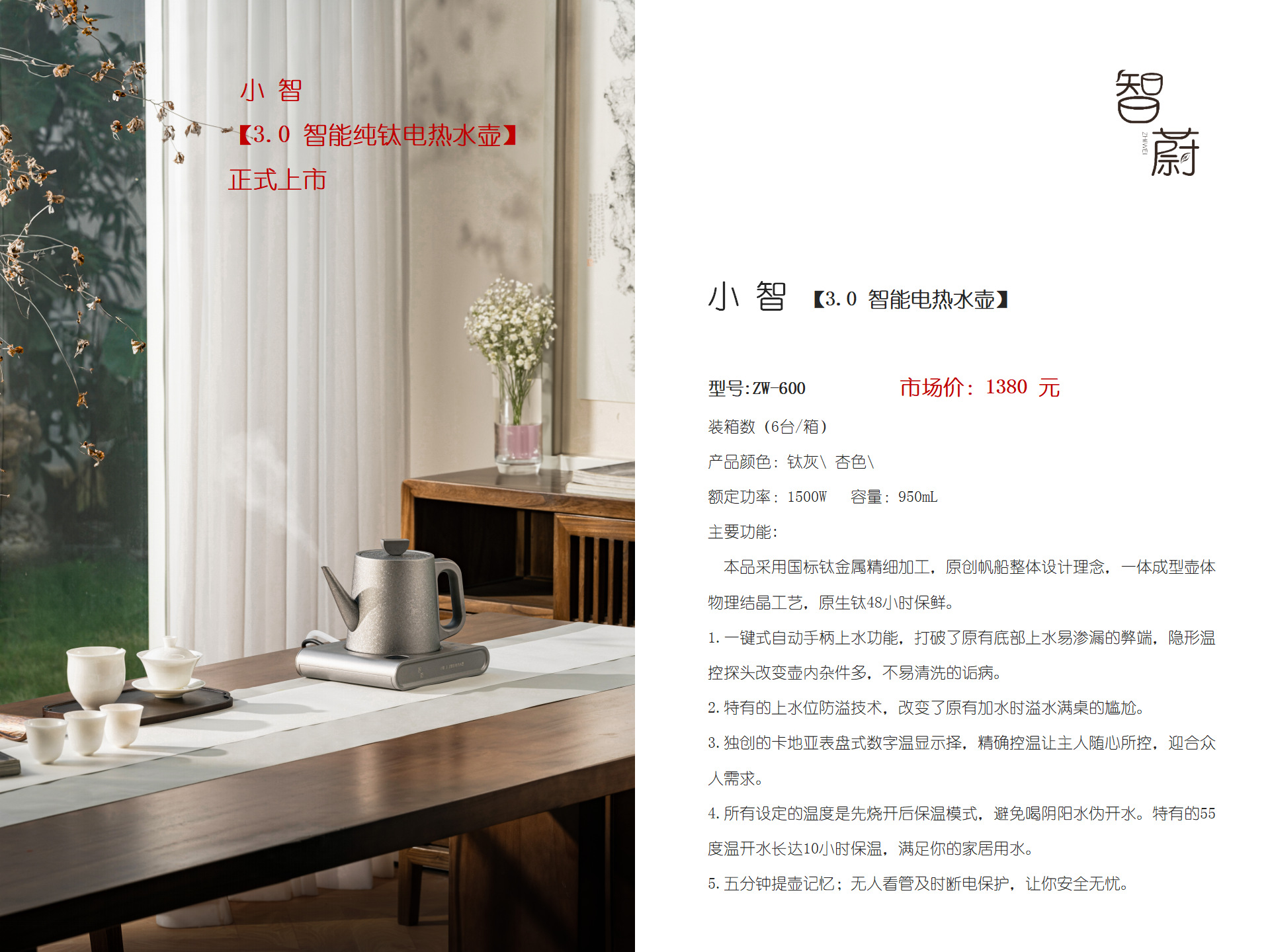 Dụng cụ pha trà Xiaozhi Ấm đun nước điện Xiaozhi Ấm đun nước pha trà nhiệt độ không đổi cách nhiệt titan nguyên chất gia dụng