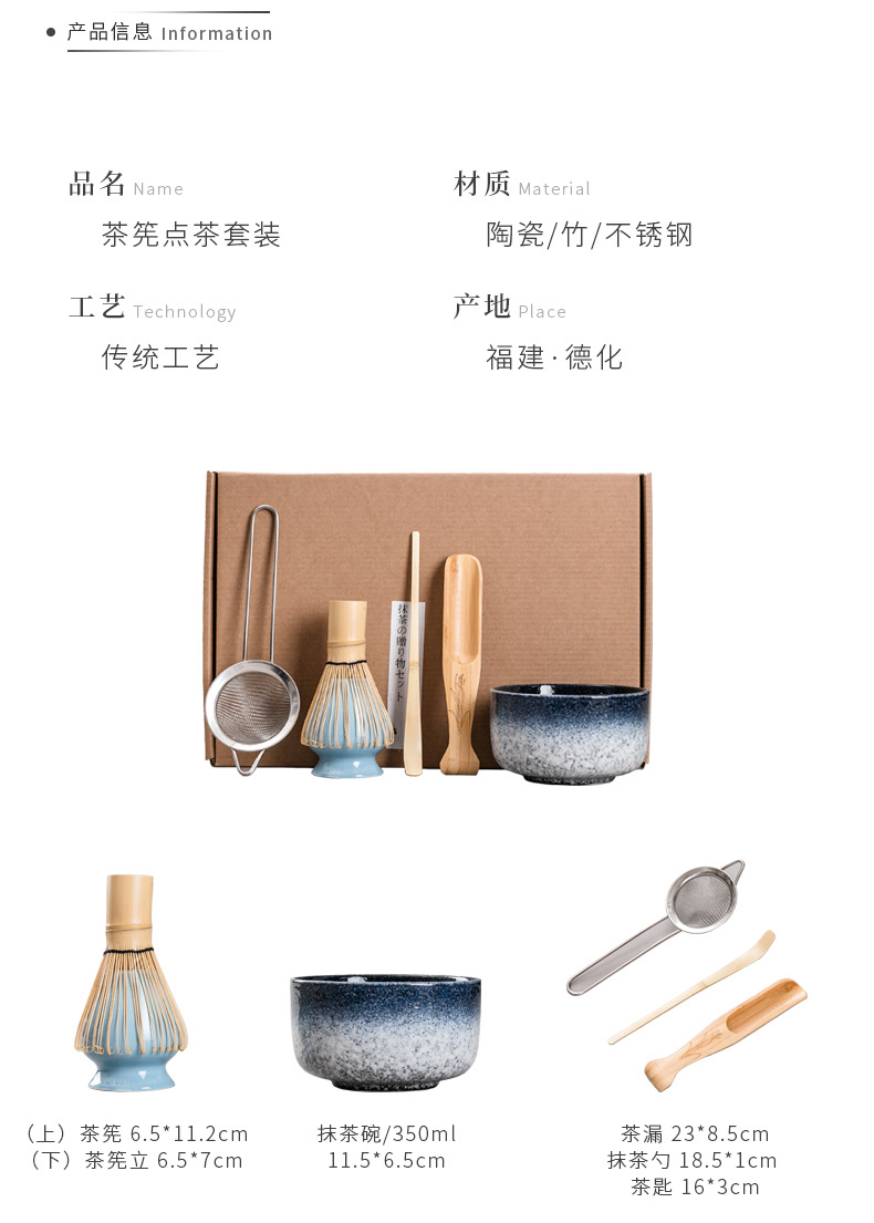 - Dụng cụ trà đạo Da'antang Matcha Bình trà Baibenli Bát trà đứng gia dụng trọn bộ dụng cụ uống trà thời Tống Bộ bình trà