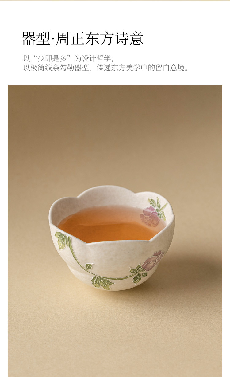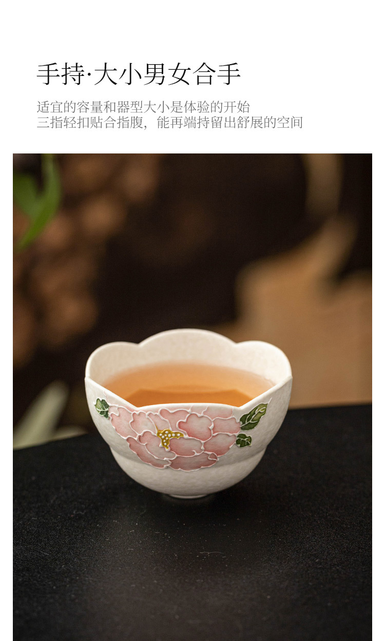 - Dụng cụ trà gốm trắng Jisu mỏ đá cốc miệng hoa mẫu đơn chạm khắc cốc trà gia dụng cốc chủ nhân cốc trà
