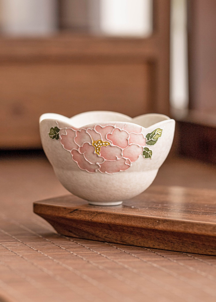 Dụng cụ trà gốm trắng Jisu mỏ đá cốc miệng hoa mẫu đơn chạm khắc cốc trà gia dụng cốc chủ nhân cốc trà