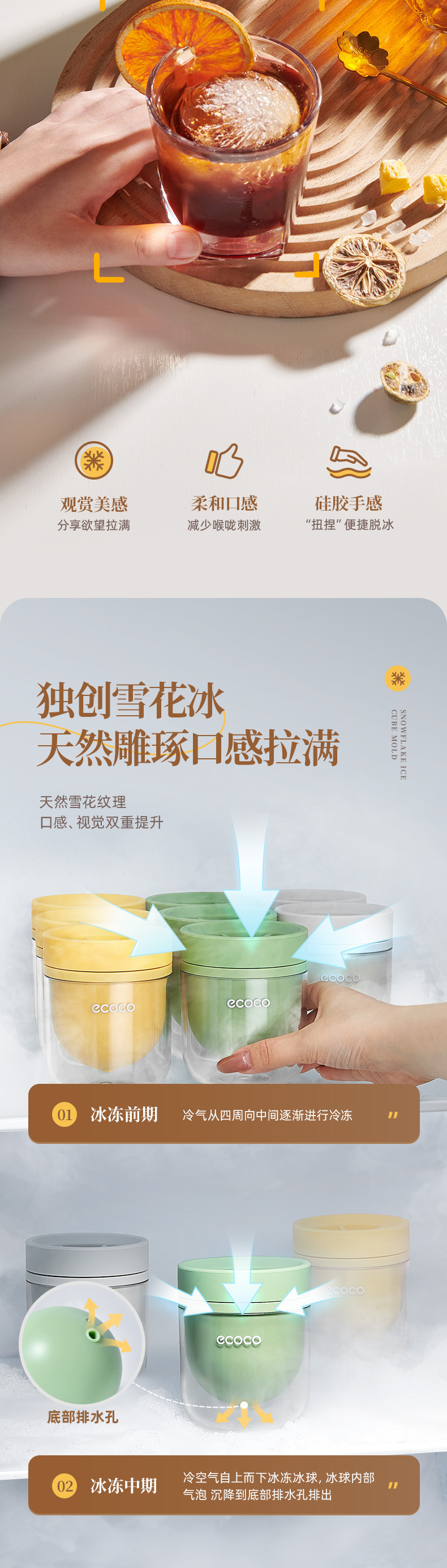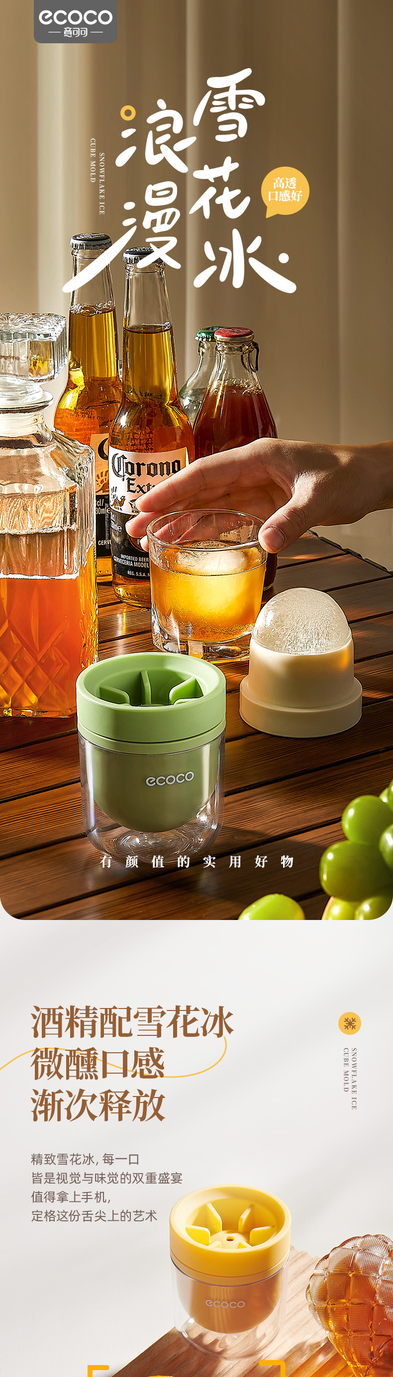 - Ecoco whisky khuôn khúc côn cầu trên băng lớn lưới đá tròn gia dụng tạo tác đá lạnh cấp thực phẩm