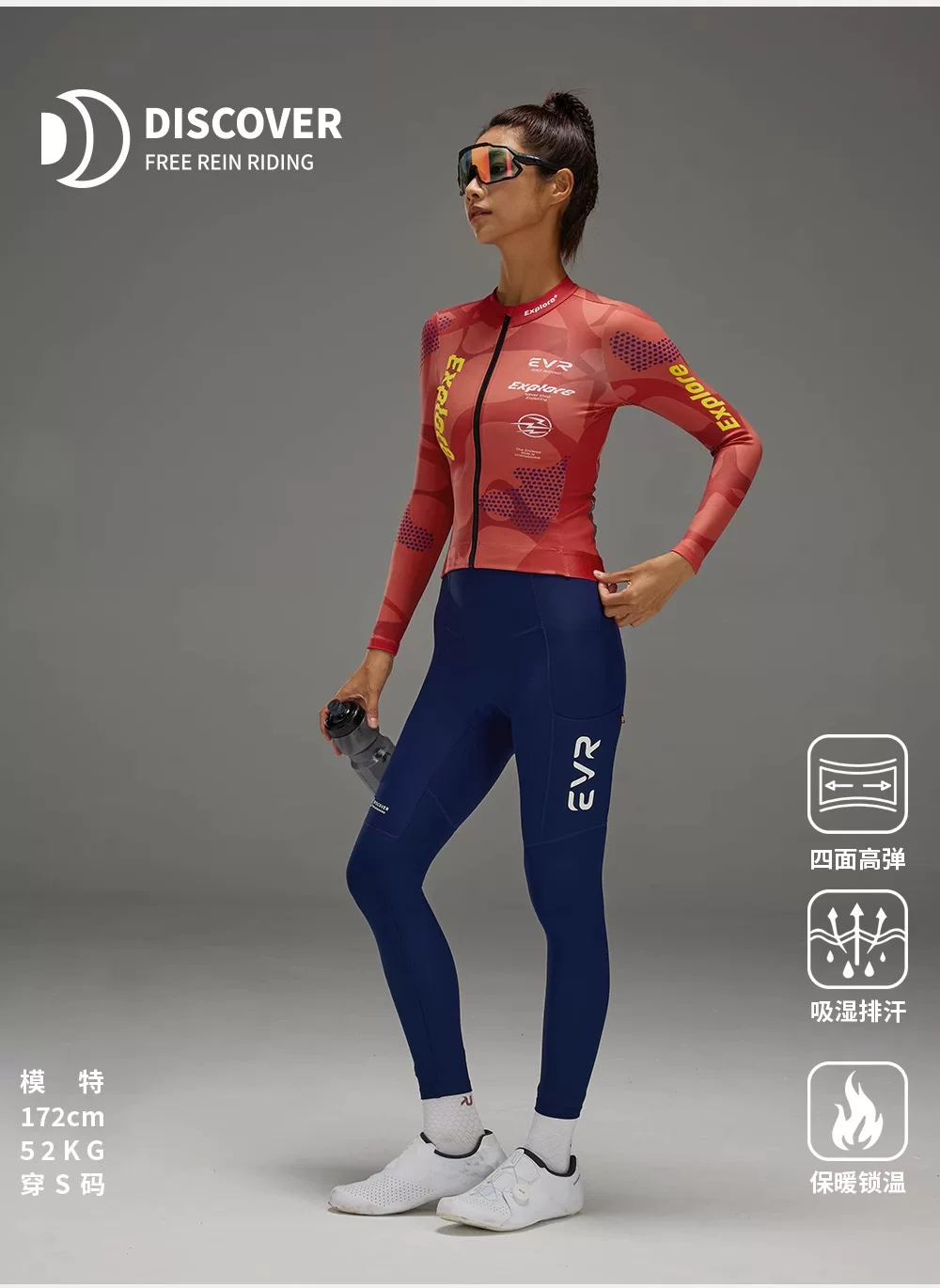 EVR-Quần áo đi xe đạp mùa thu đông dành cho nữ có lót lông cừu ấm áp màu hồng gradient áo khoác xe đạp leo núi mùa đông có lót lông cừu kiểu dáng mới