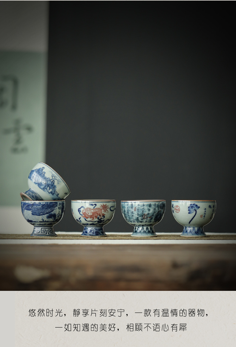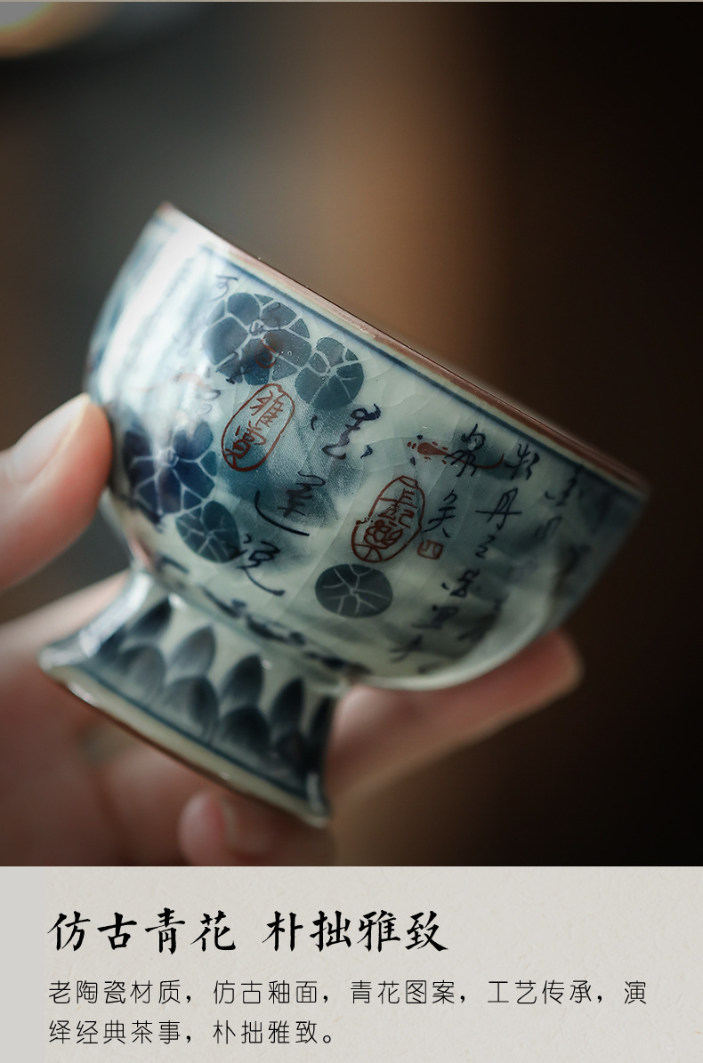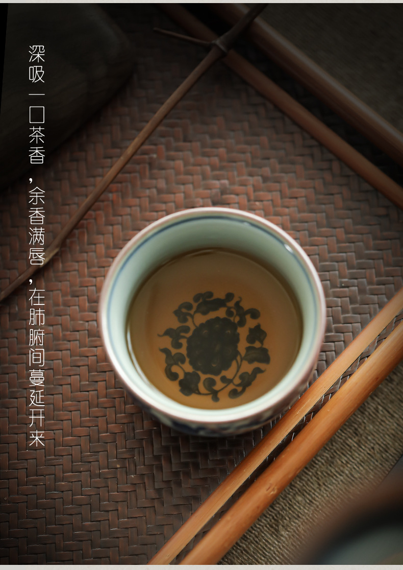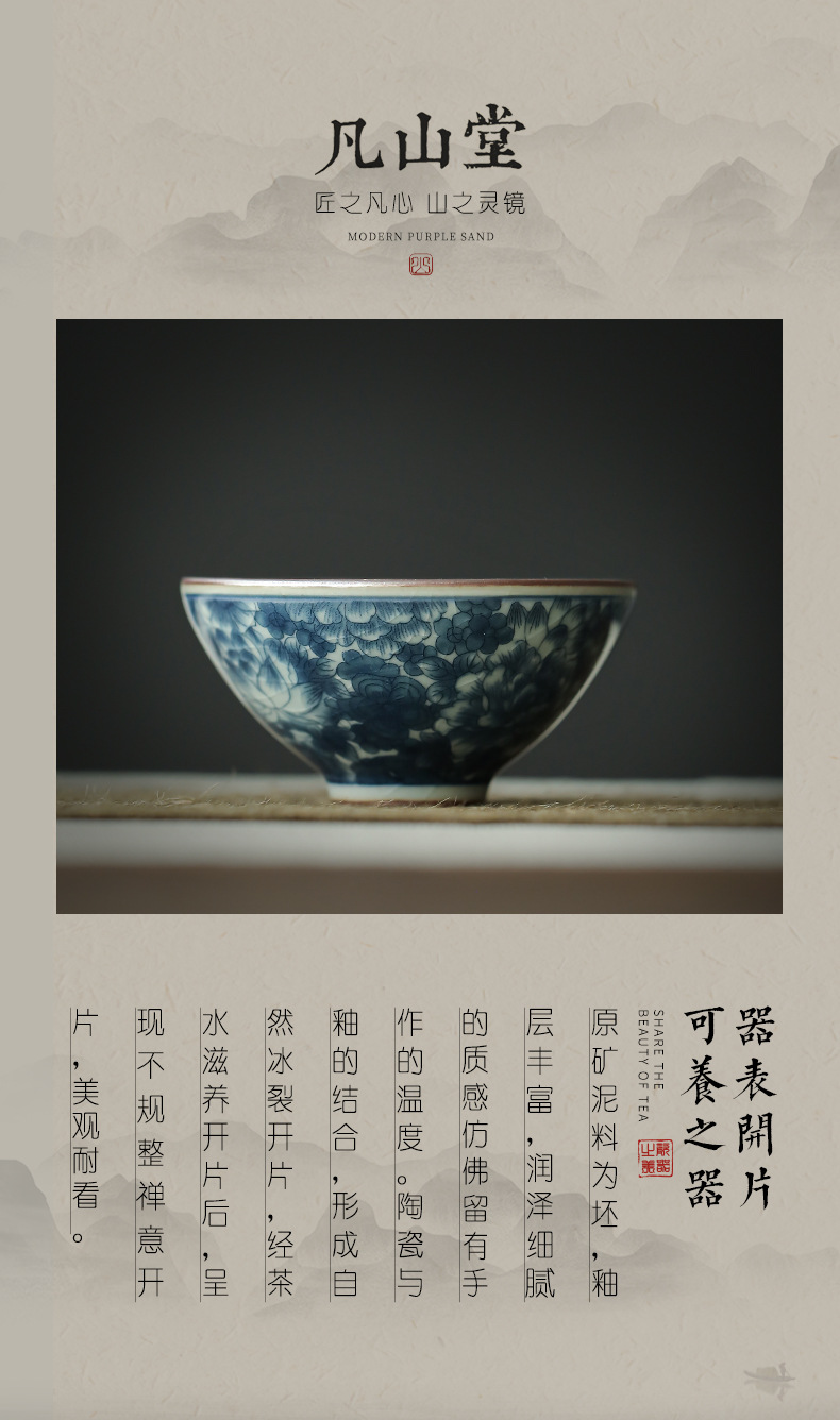 - Fanshantang đất sét cũ mở mảnh màu xanh và trắng chủ nhân cốc tranh phong cảnh đơn gốm sứ cốc trà giả cổ Kung Fu