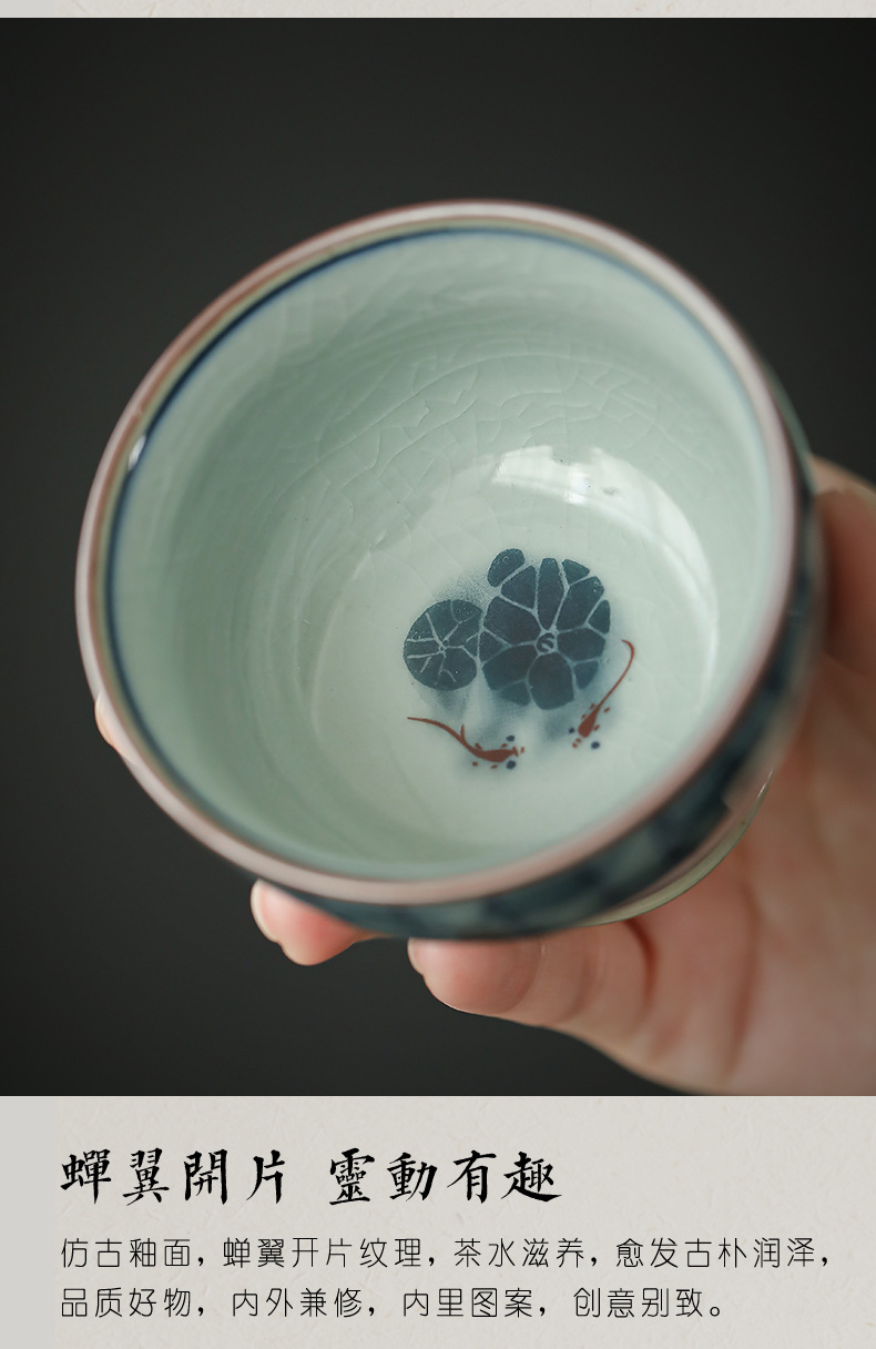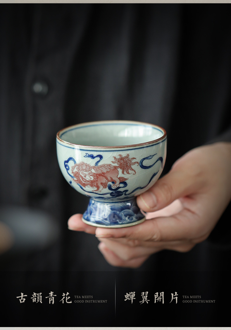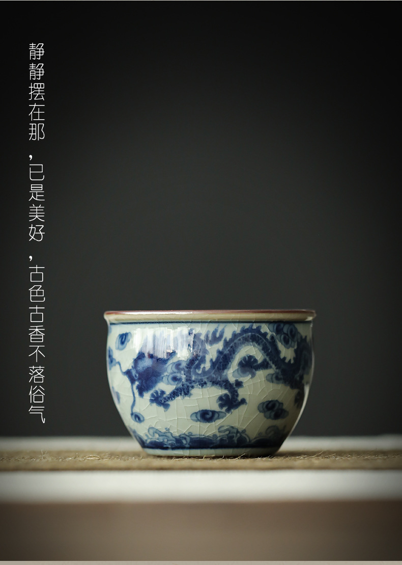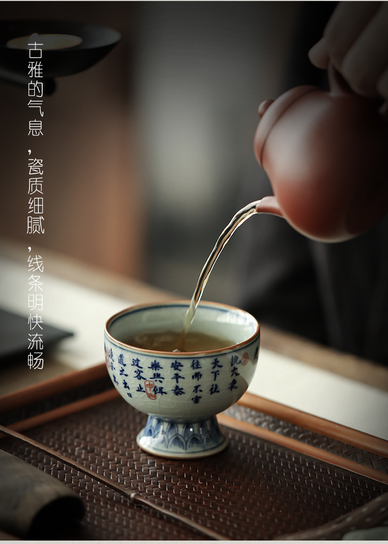 - Fanshantang đất sét cũ mở mảnh màu xanh và trắng chủ nhân cốc tranh phong cảnh đơn gốm sứ cốc trà giả cổ Kung Fu