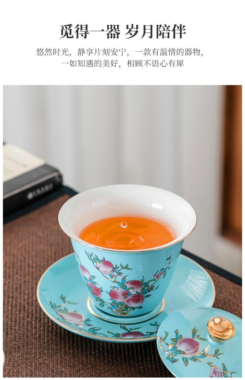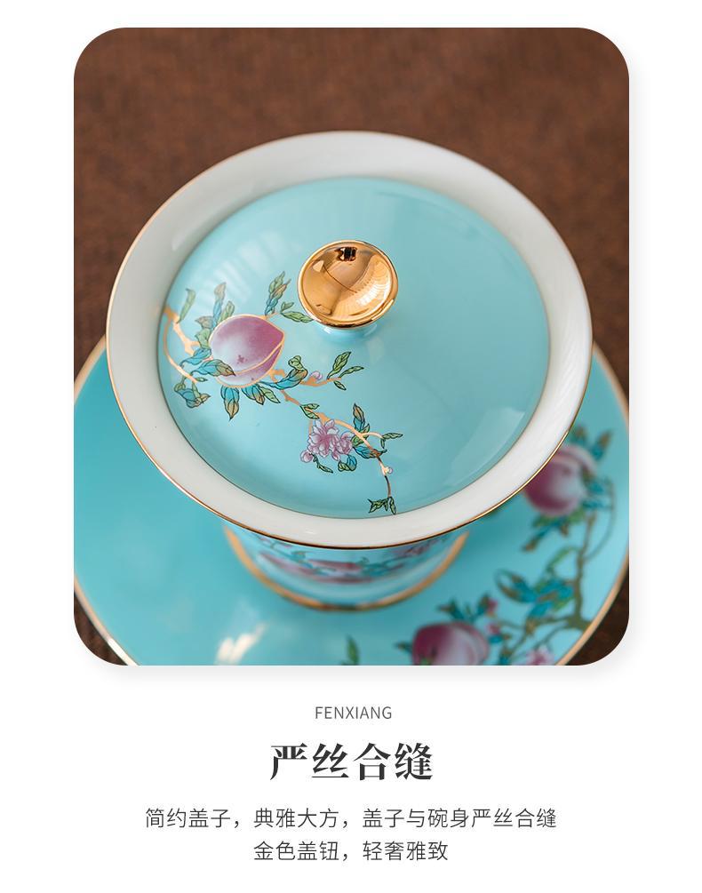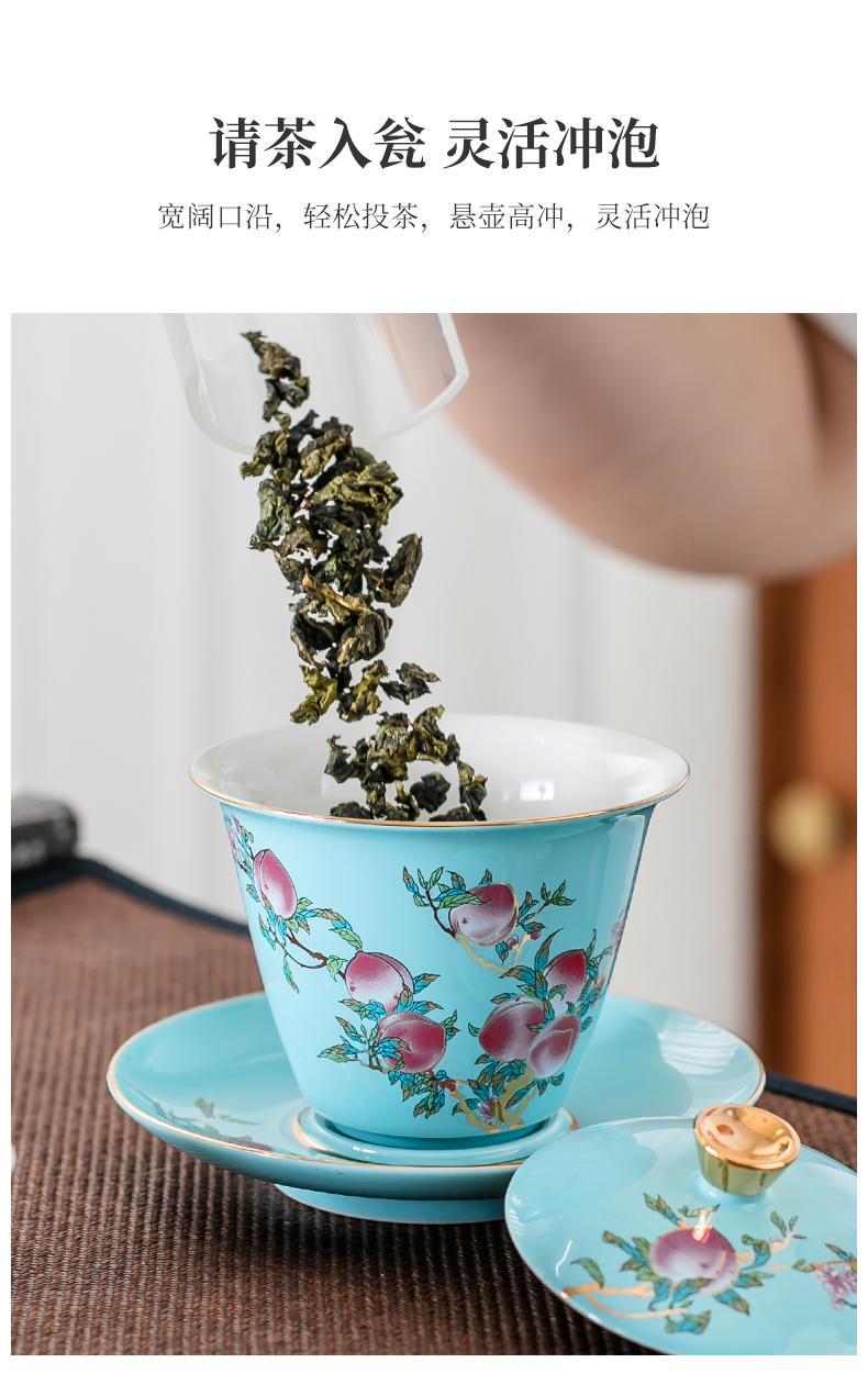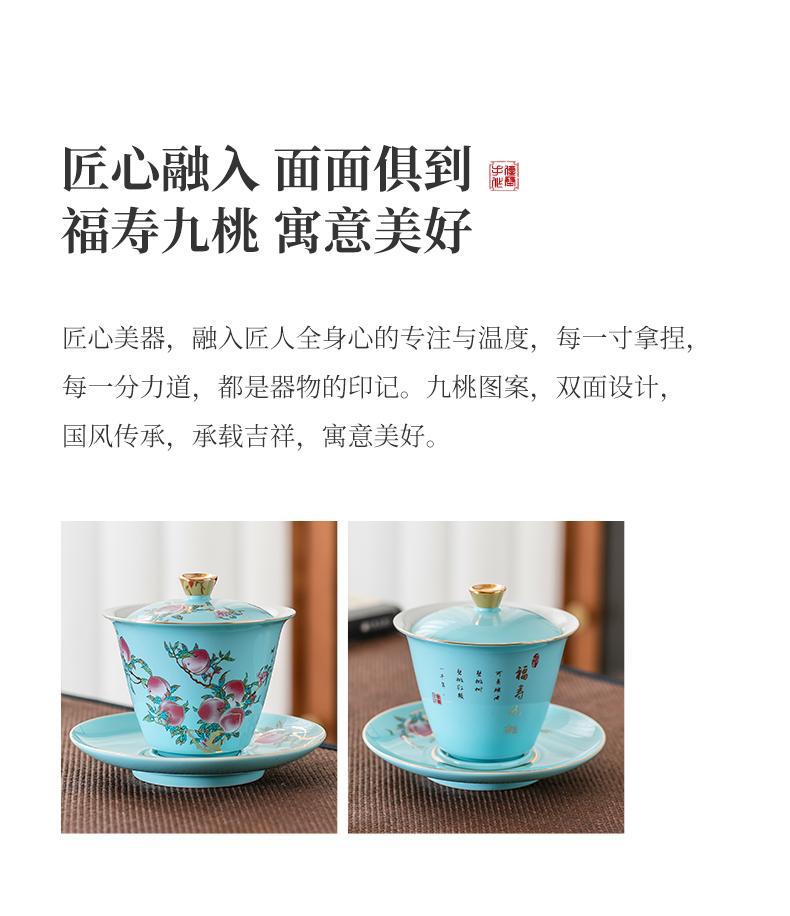 Fushou Jiutao Sancai Gaiwan Đơn Cốc Gốm Sứ Gia Đình Bát Trà Trà Tách Nước Cầm Tay Nồi Cao Cấp Kung Fu Quà Tặng