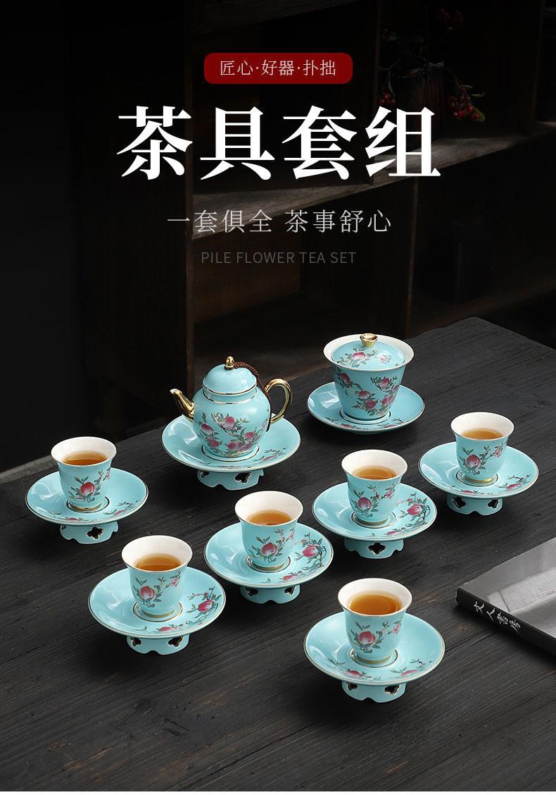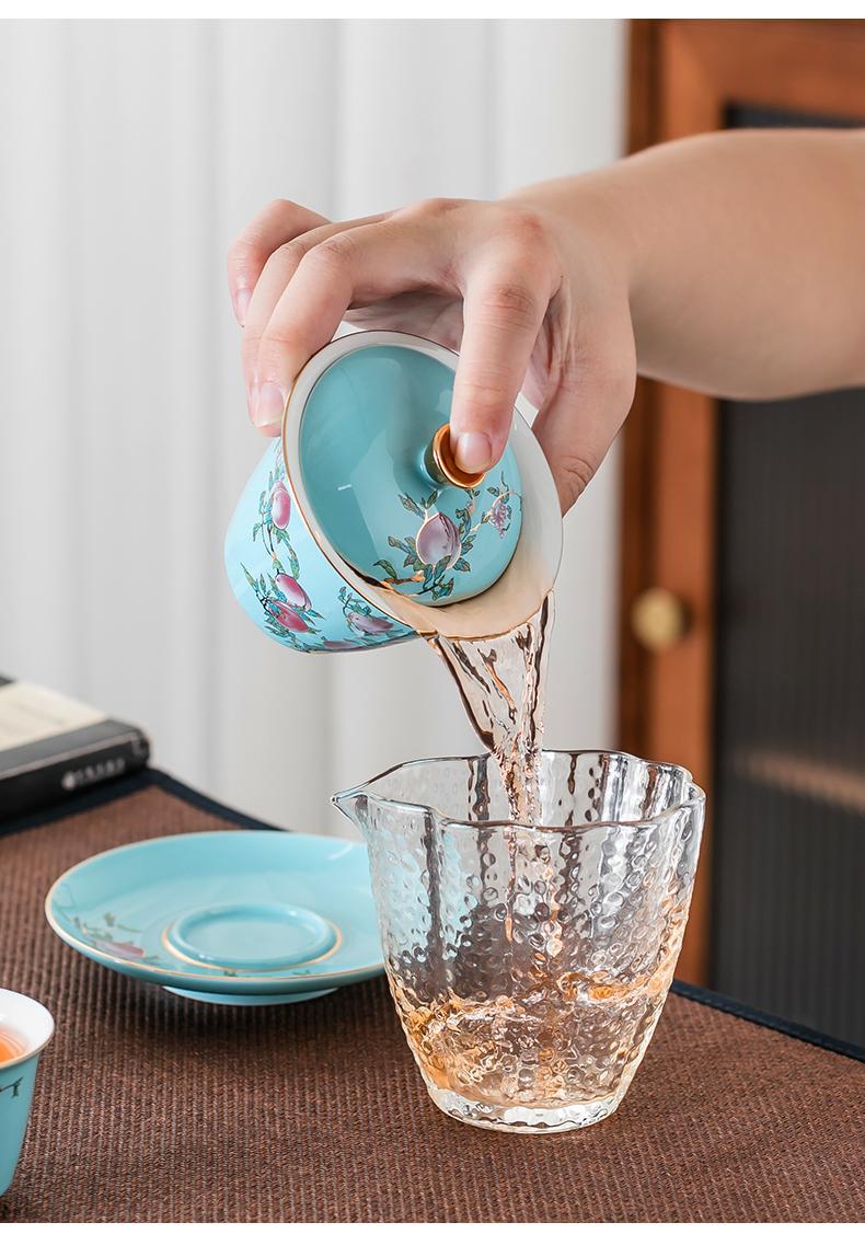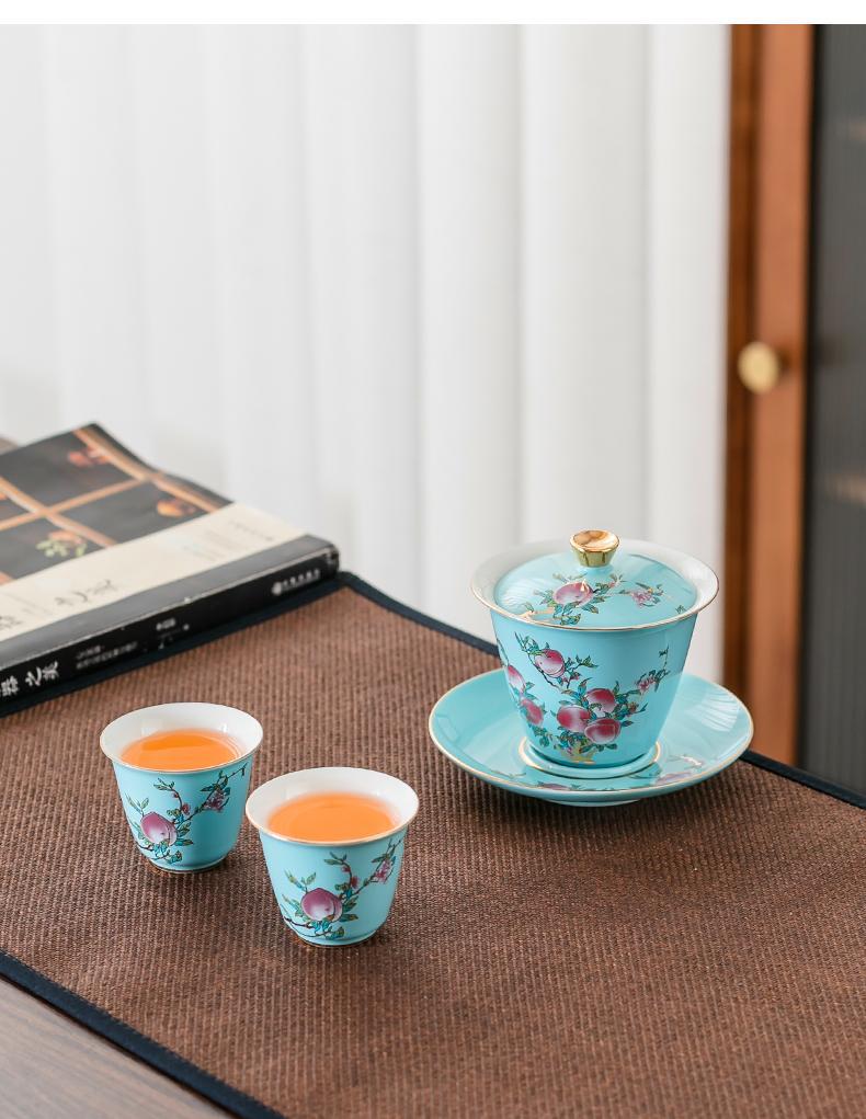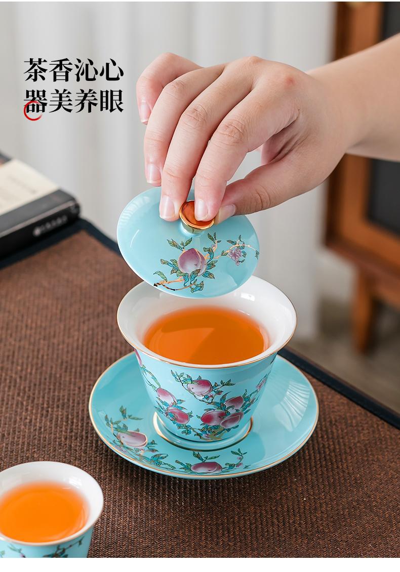 Fushou Jiutao Sancai Gaiwan Đơn Cốc Gốm Sứ Gia Đình Bát Trà Trà Tách Nước Cầm Tay Nồi Cao Cấp Kung Fu Quà Tặng