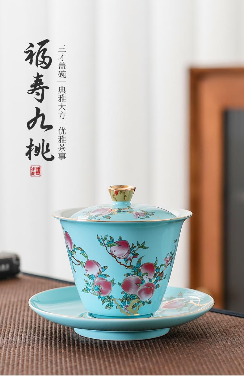 - Fushou Jiutao Sancai Gaiwan Đơn Cốc Gốm Sứ Gia Đình Bát Trà Trà Tách Nước Cầm Tay Nồi Cao Cấp Kung Fu Quà Tặng