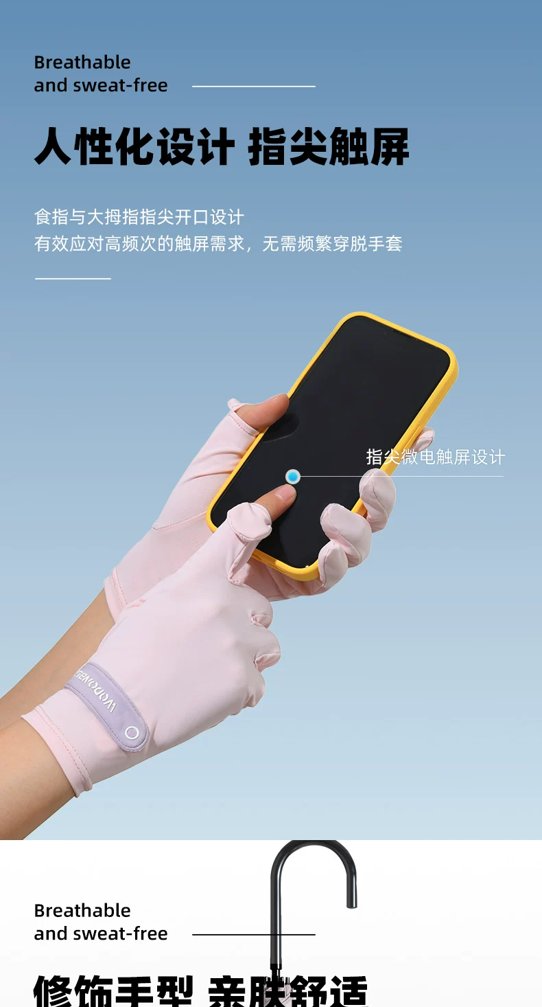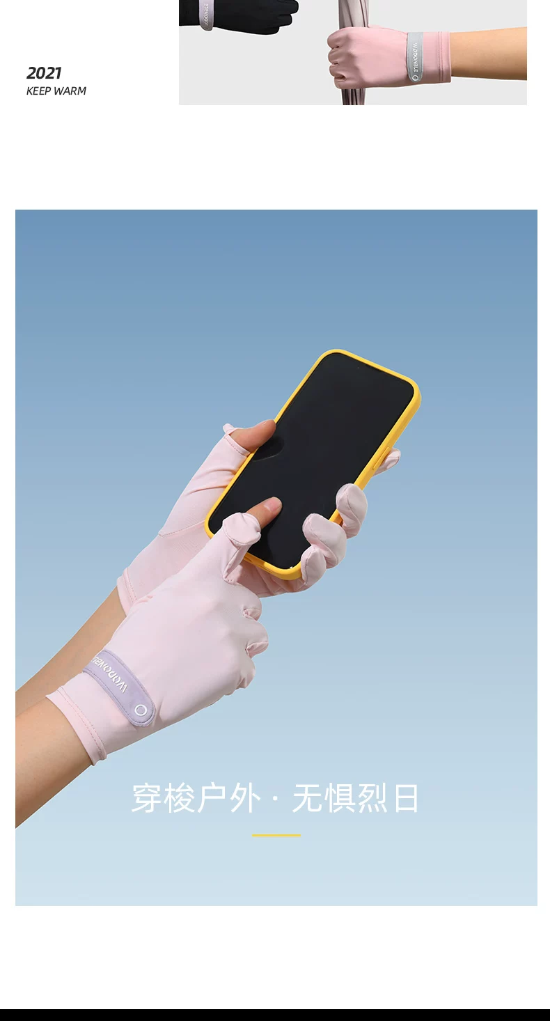 - Găng tay chống nắng cho nữ, chống tia cực tím, kiểu ngắn bằng lụa băng mùa hè, không ngón, lái xe, màn hình cảm ứng, chống trượt, xe điện, đạp xe ngoài trời