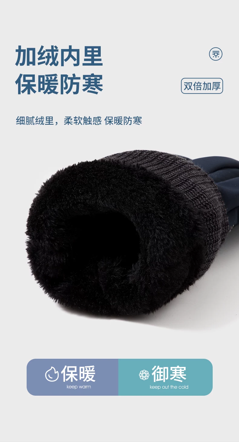 - Găng tay đi xe đạp dành cho nam giới trong mùa đông, chống gió ngoài trời, chống lạnh, ấm áp, lót lông cừu, dày dặn, không thấm nước, tương thích với màn hình cảm ứng, găng tay cotton có ngăn cách ngón tay.